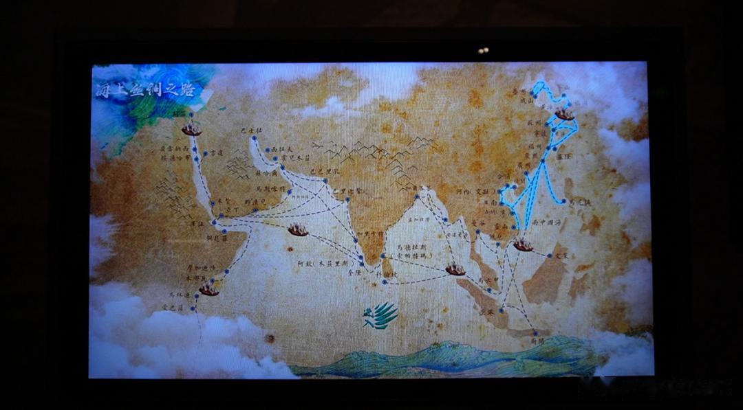 第一部分走向世界。展示世界地图。图上圈圈点点的地名,表示华侨从流寓到定居的地点,他们的落地开拓之处。大厅中一艘艘仿制古代帆船模型,也揭示了华侨先祖漂洋过海谋生的辛苦历程,见证了契约华工的悲惨命运。两侧展橱的图片、资料,展示华侨走向世界的历程。