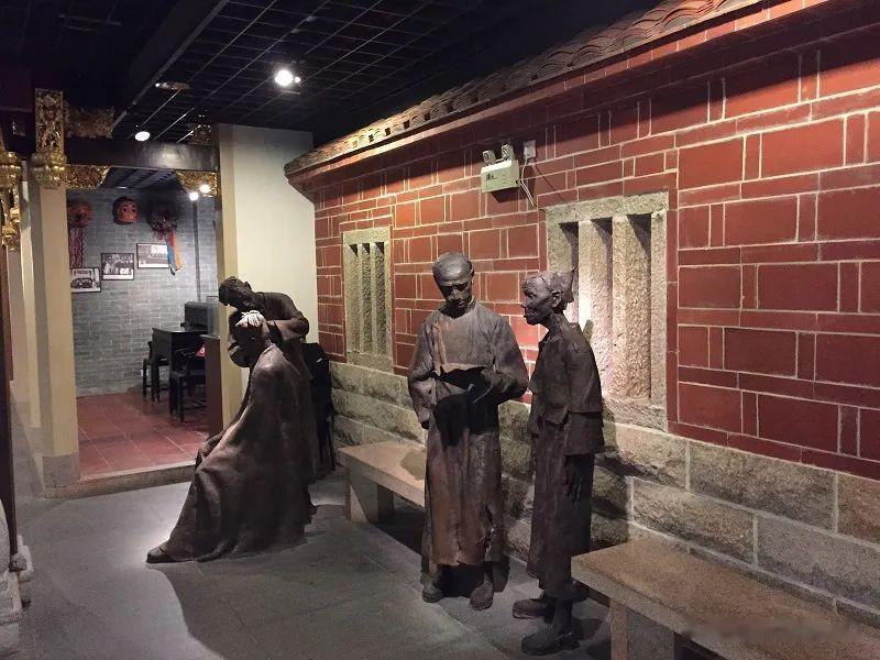 在展厅中,还有仿制南洋旧民俗街,它是世界各地唐人街的缩影。在街道上有腊像的人力车夫及人力车实物,主要表示早期华人、华侨创业海外的艰辛历程。还有华侨赠送的旧日常生活用品。及许多烈士照片和纪念碑,向人们展示抗日战争时期华侨华人抗战事迹。