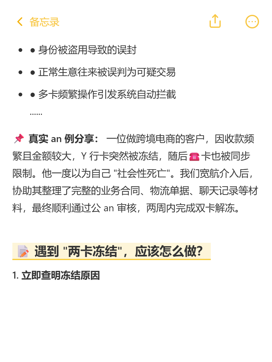 如果你或身边的朋友正面临 Y 行卡、☎️卡被冻结的困扰,不要放弃希望。大多数情况下,问题是可以得到解决的~
