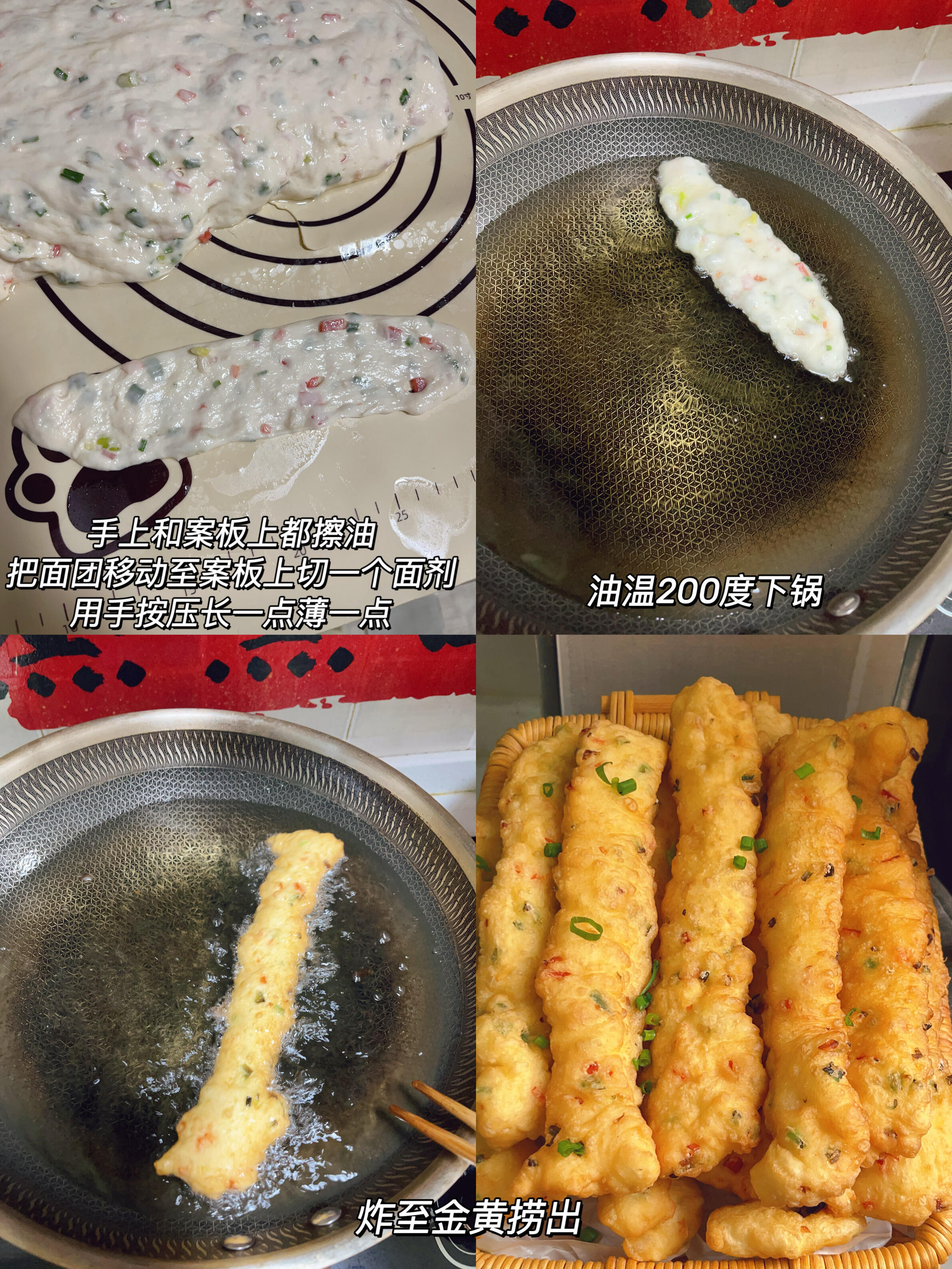 Step 3:整形+炸制——油温是关键,200℃炸出黄金脆皮