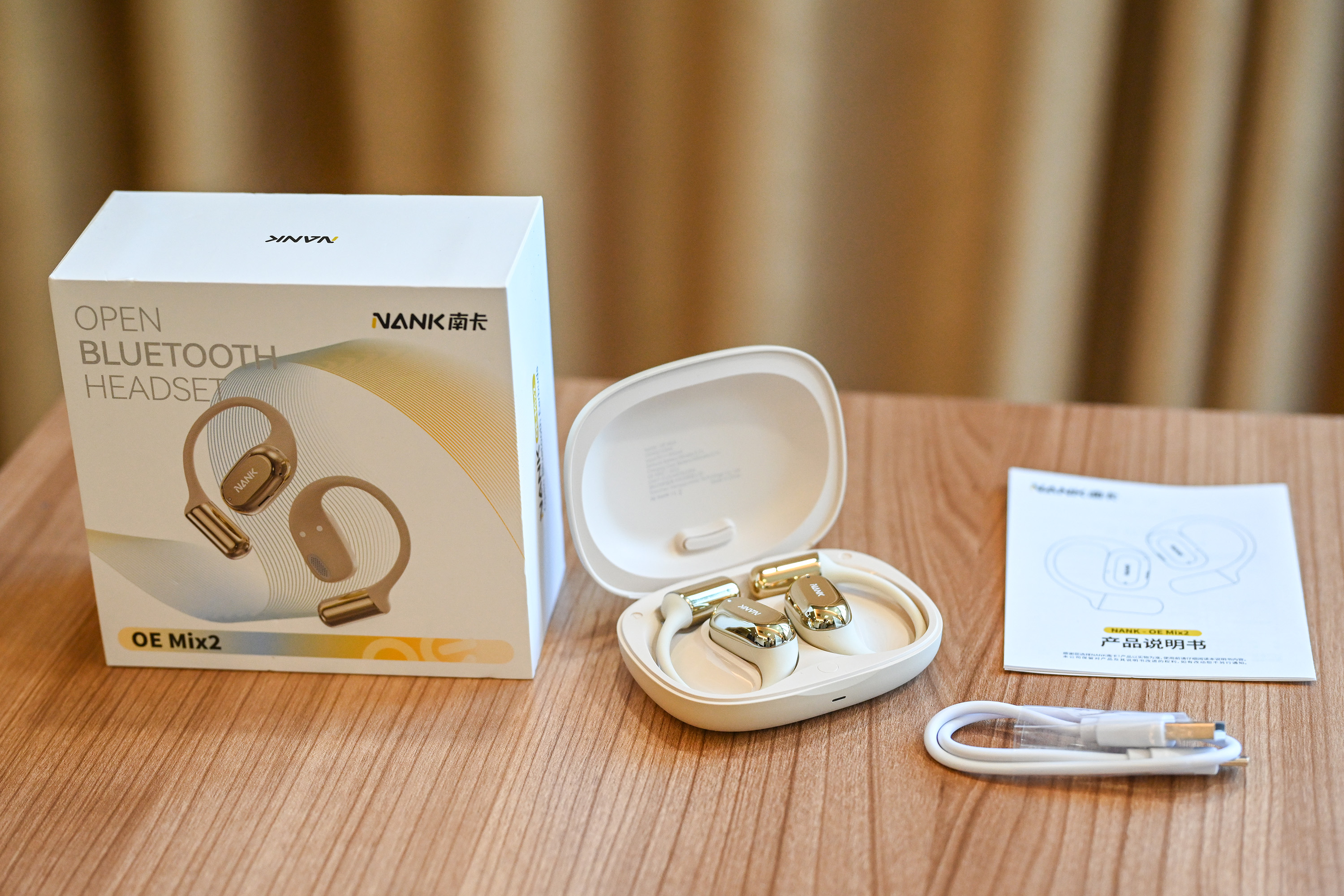 南卡OEMix2的包装延续了品牌一贯的简约风格,开箱后,耳机充电仓、充电线及说明书依次陈列。磨砂质感的椭圆形充电仓,视觉上已透露出对细节的打磨,入手舒服且防滑。