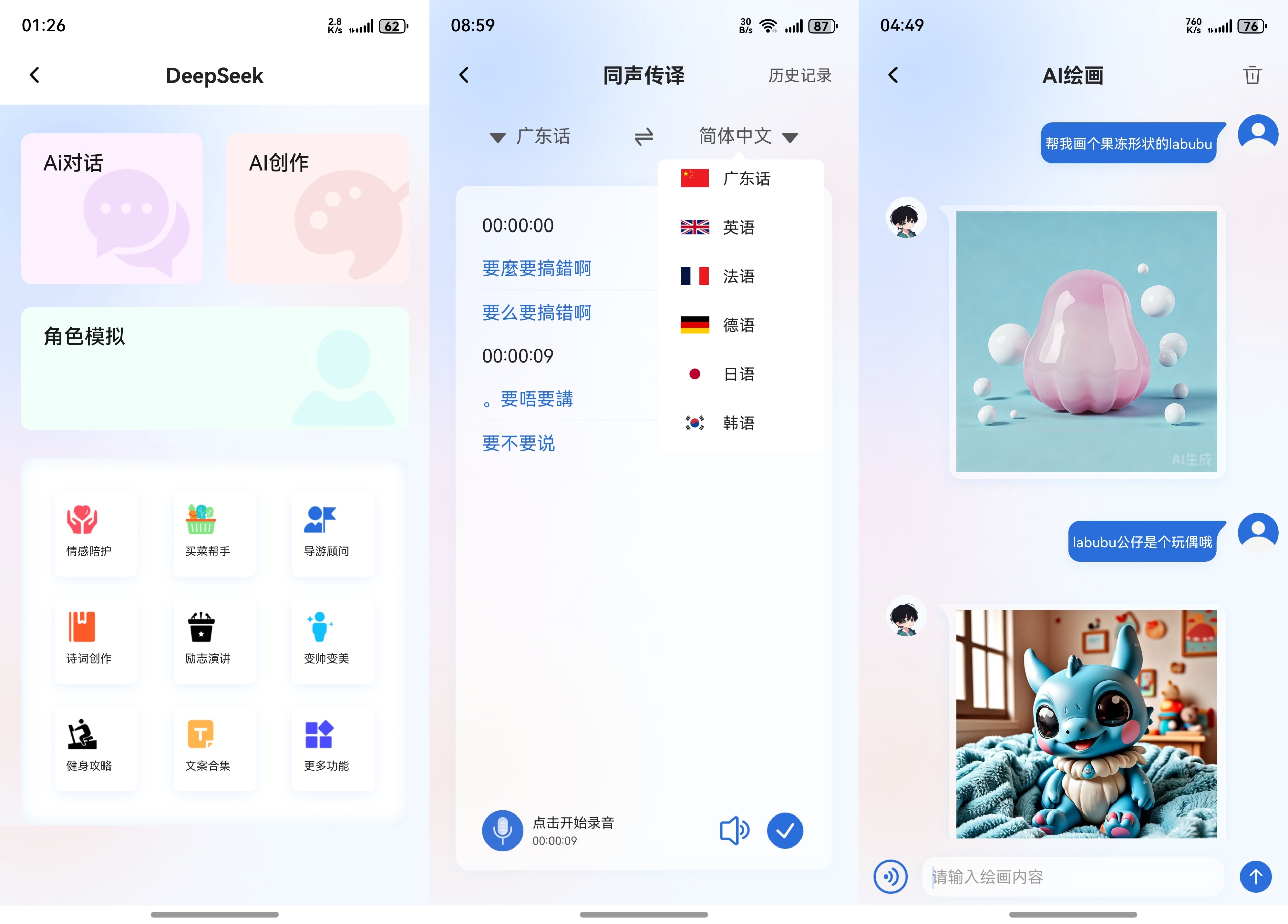 最令我感到惊喜的是这款耳机在AI功能的入口:App内嵌“南卡AI大模型”面板,默认三击左耳耳机,启动语音助手,一键唤醒AI翻译、AI对话、AI语音助手等功能,操作逻辑贴近日常使用习惯。