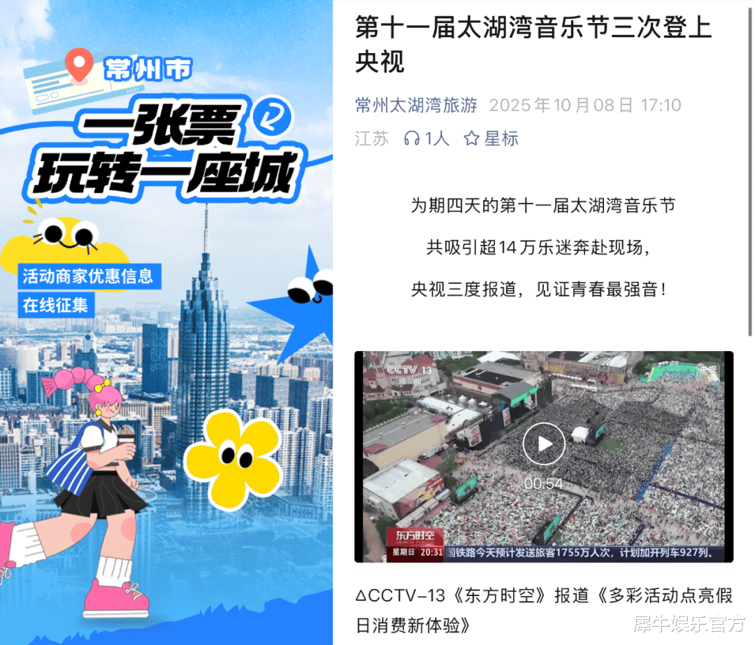 犀牛娱乐原创文|方正 编辑|朴芳太湖湾四天招待14万乐迷把常州变成了“年轻人的朝圣地”、刀郎乌鲁木齐演唱会四场5万观众拉