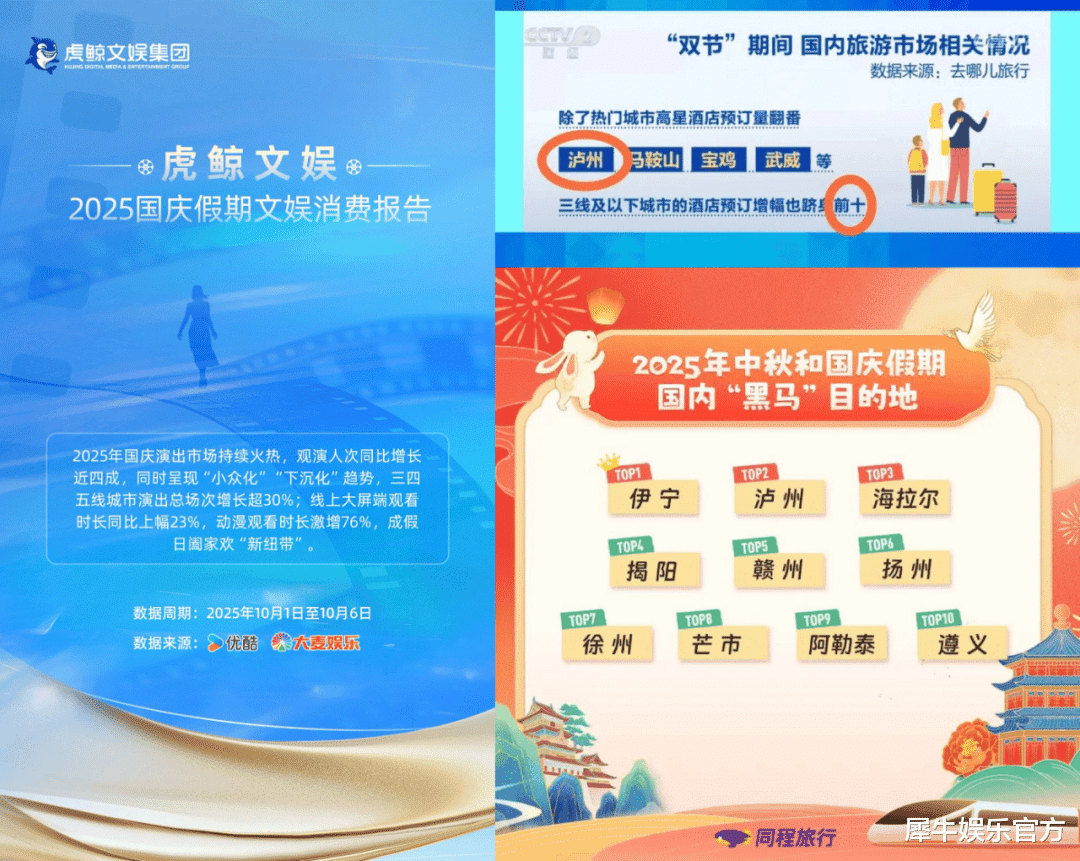 虎鲸文娱近日发布的《2025国庆假期文娱消费报告》(下称《报告》)把以上的趋势总结为“下沉化”、“小众化”并指出——“三线及以下城市的演出活动显著增加,总场次同比增长34.1%,总票房同比上升86.6%。其中宝鸡、马鞍山、泸州、日照、郴州演出数量增速显著,受‘苏超’等活动影响,体育赛事和音乐节最受当地观众青睐。”