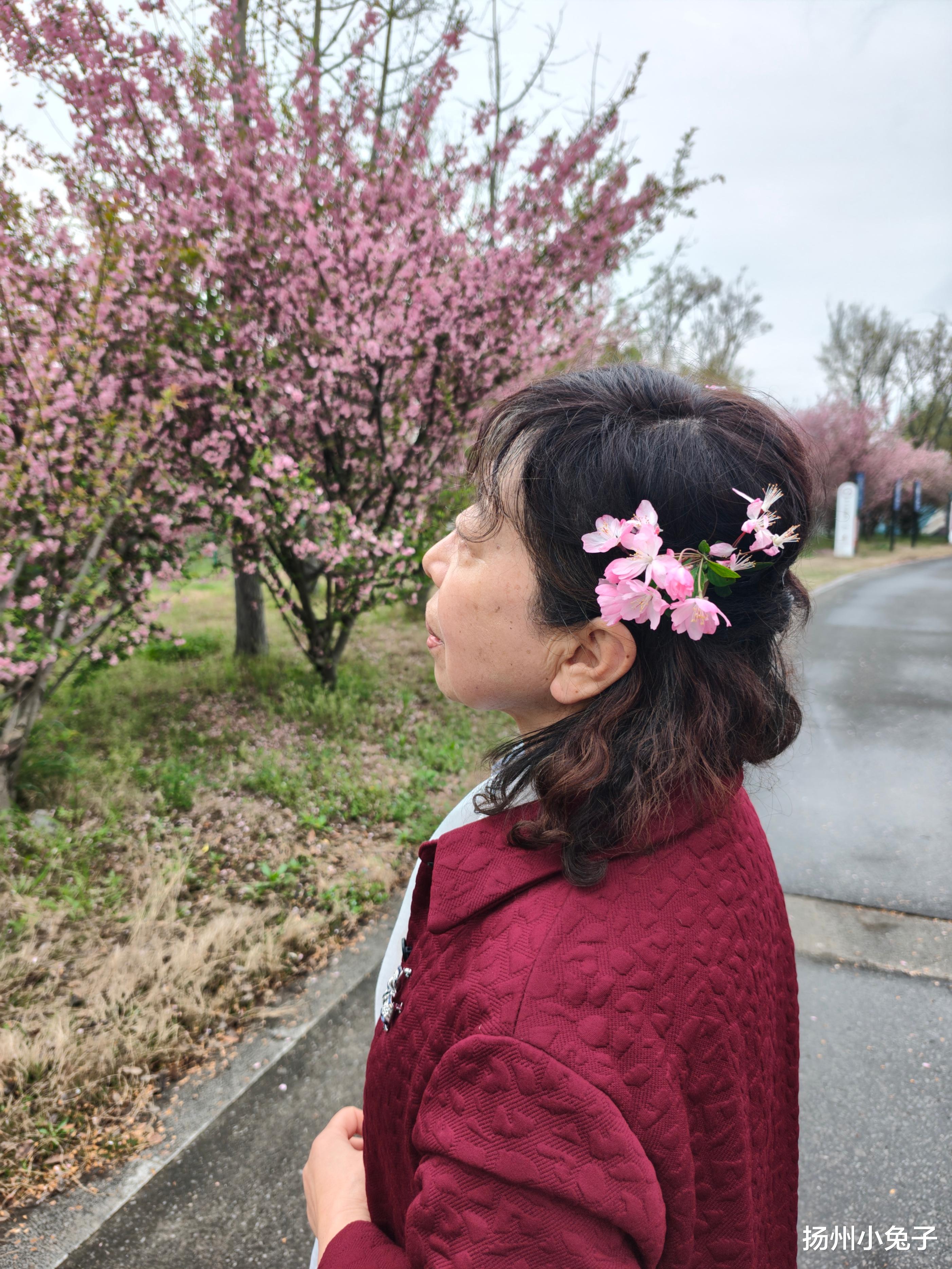 是的,她们没有被海棠花迷失了方向,却被海棠花拖住了双腿。俩人还在进来不远处的几棵海棠树下,留下一张张“吾与花孰美?”的美好瞬间!