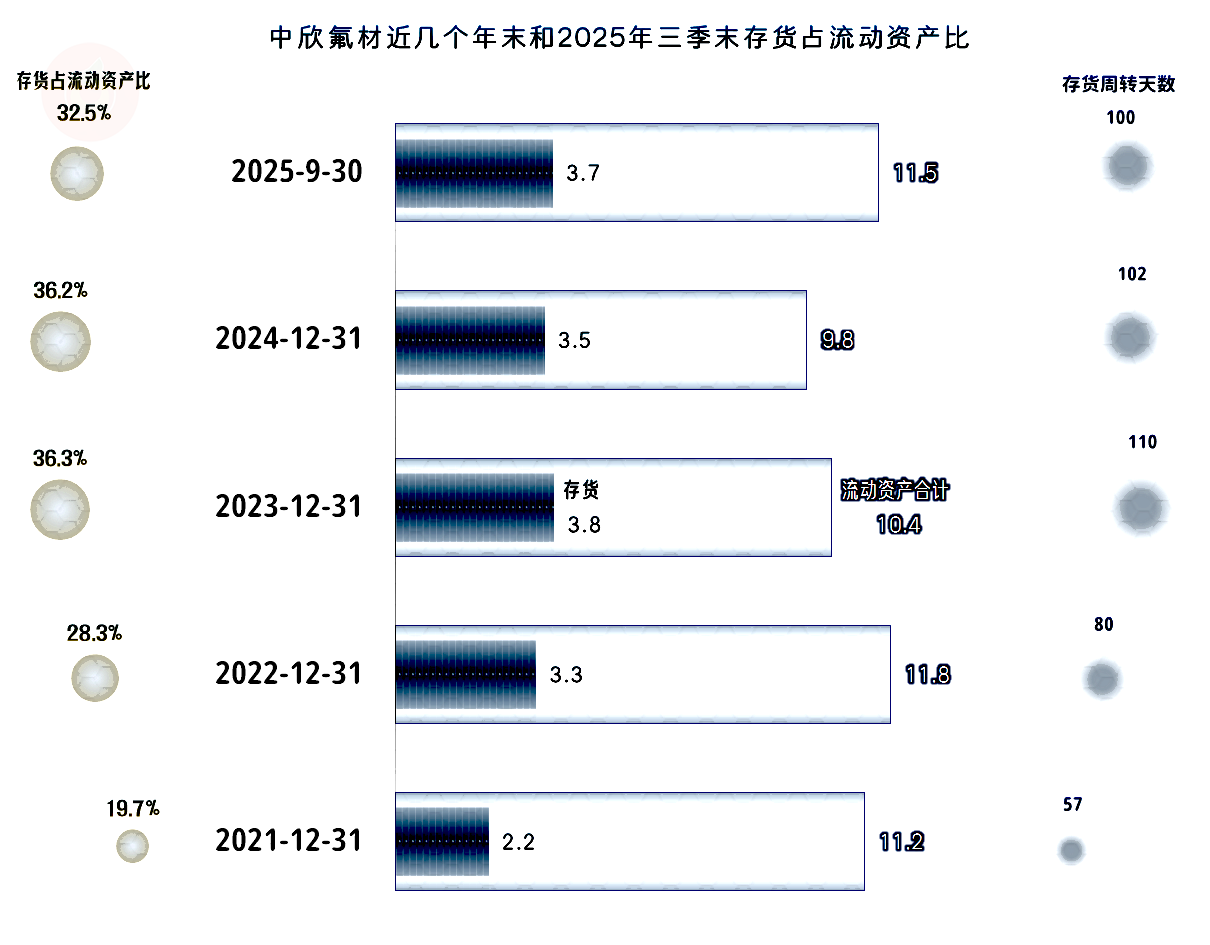 存货规模在2023年末大幅增长后,2024年末和2025年三季度末都算正常波动,2025年前三季度的存货周转天数较前两年还略有缩短。