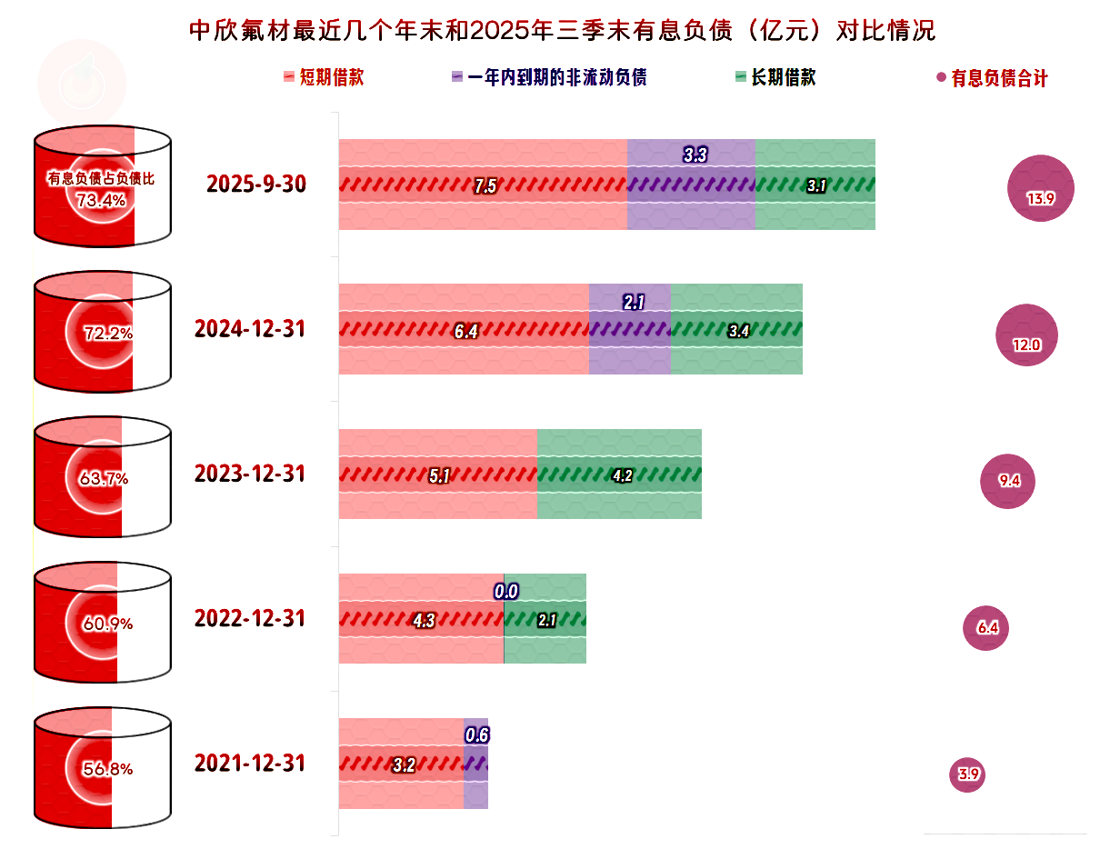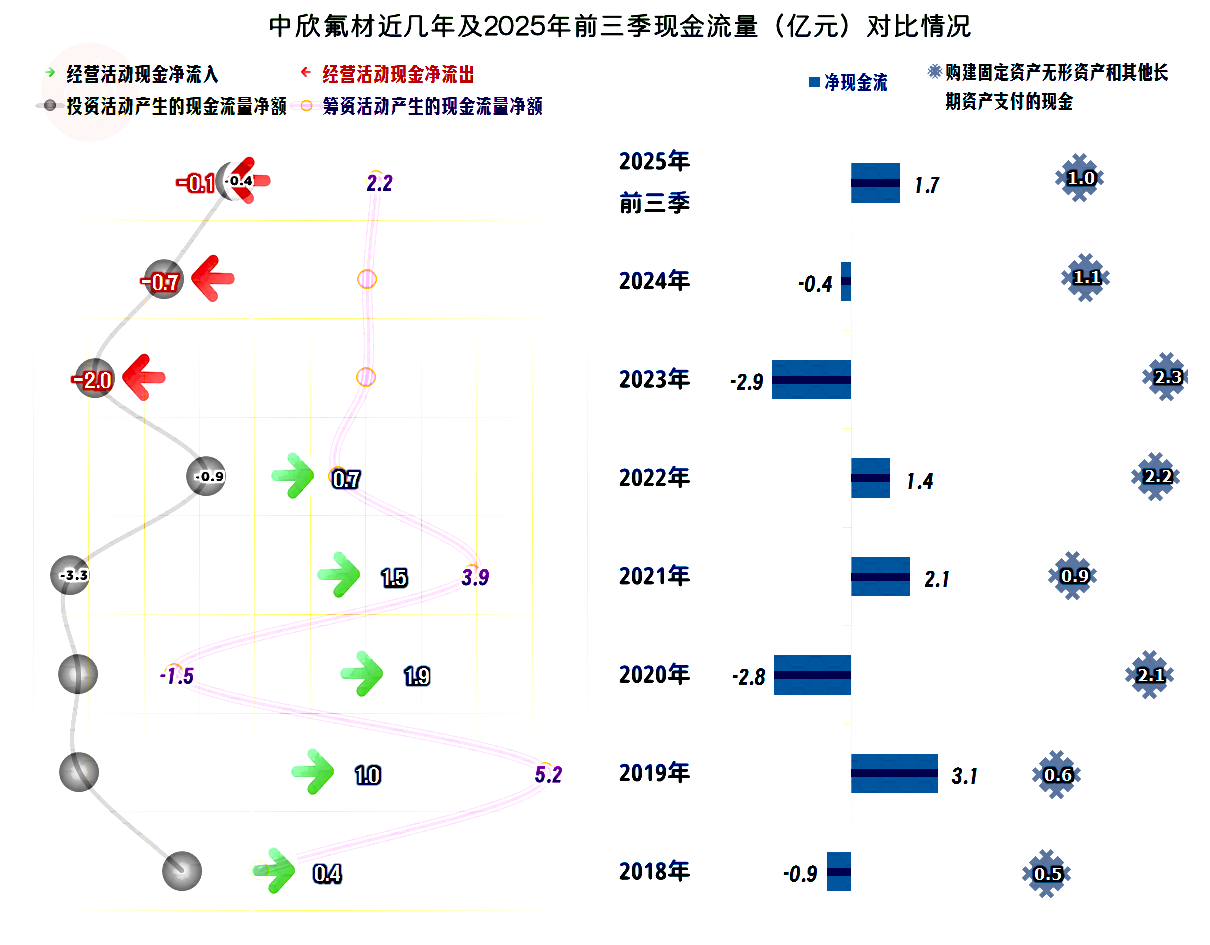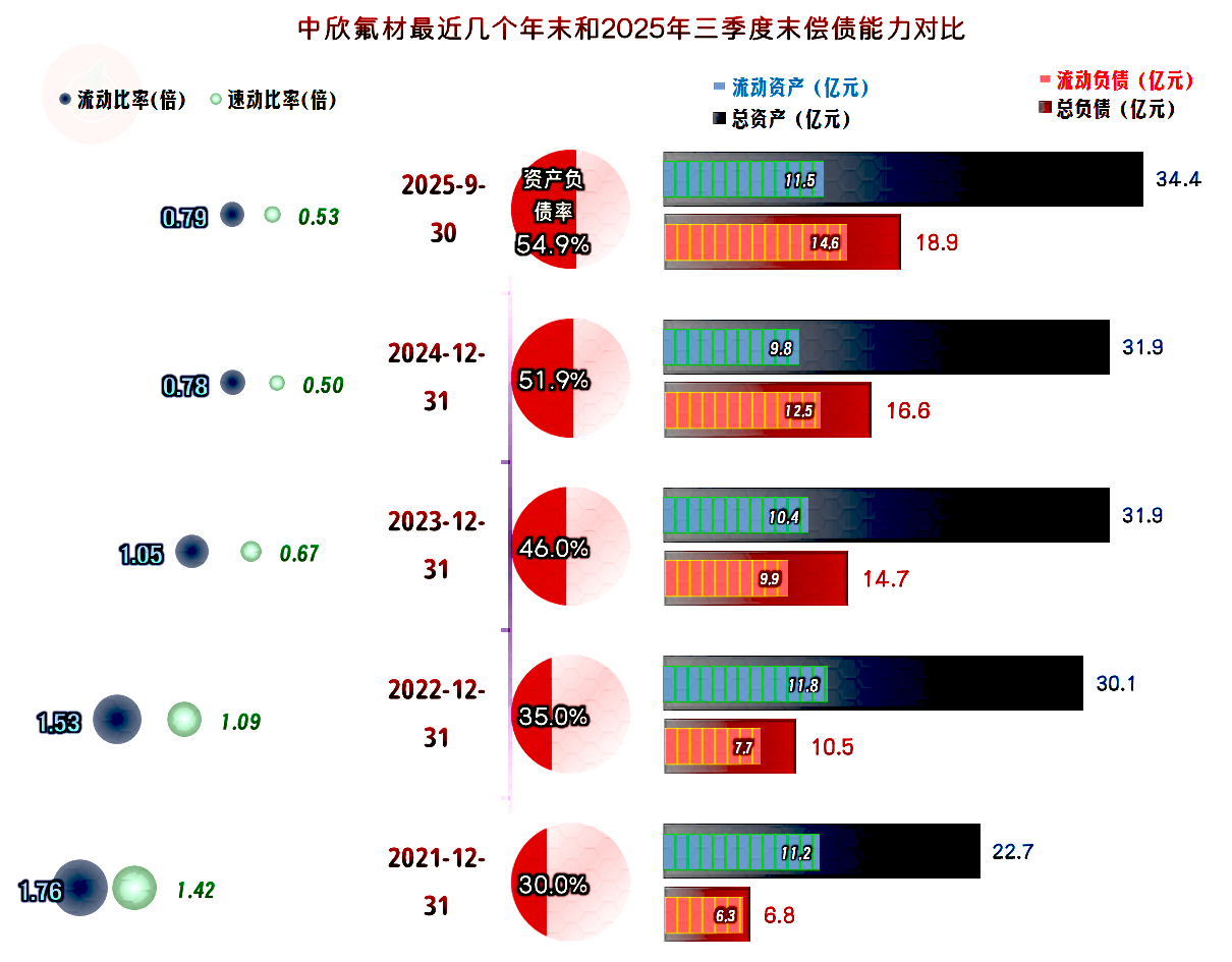 中欣氟材的资产负债率并不高,长期偿债能力看起来还不错。由于其资产结构偏重,短期偿债能力从2023年末以来,看起来就不太好。