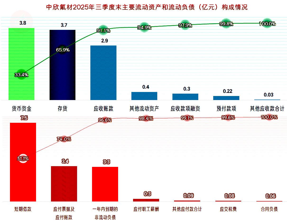 主要的流动资产是货币资金、存货和应收账款,主要的流动负债是短期借款等有息负债和“应付票据及应付账款”,现在的情况,只能靠续贷或借新还旧来解决短期有息负债问题,业务周转上正常运营的问题不大。
