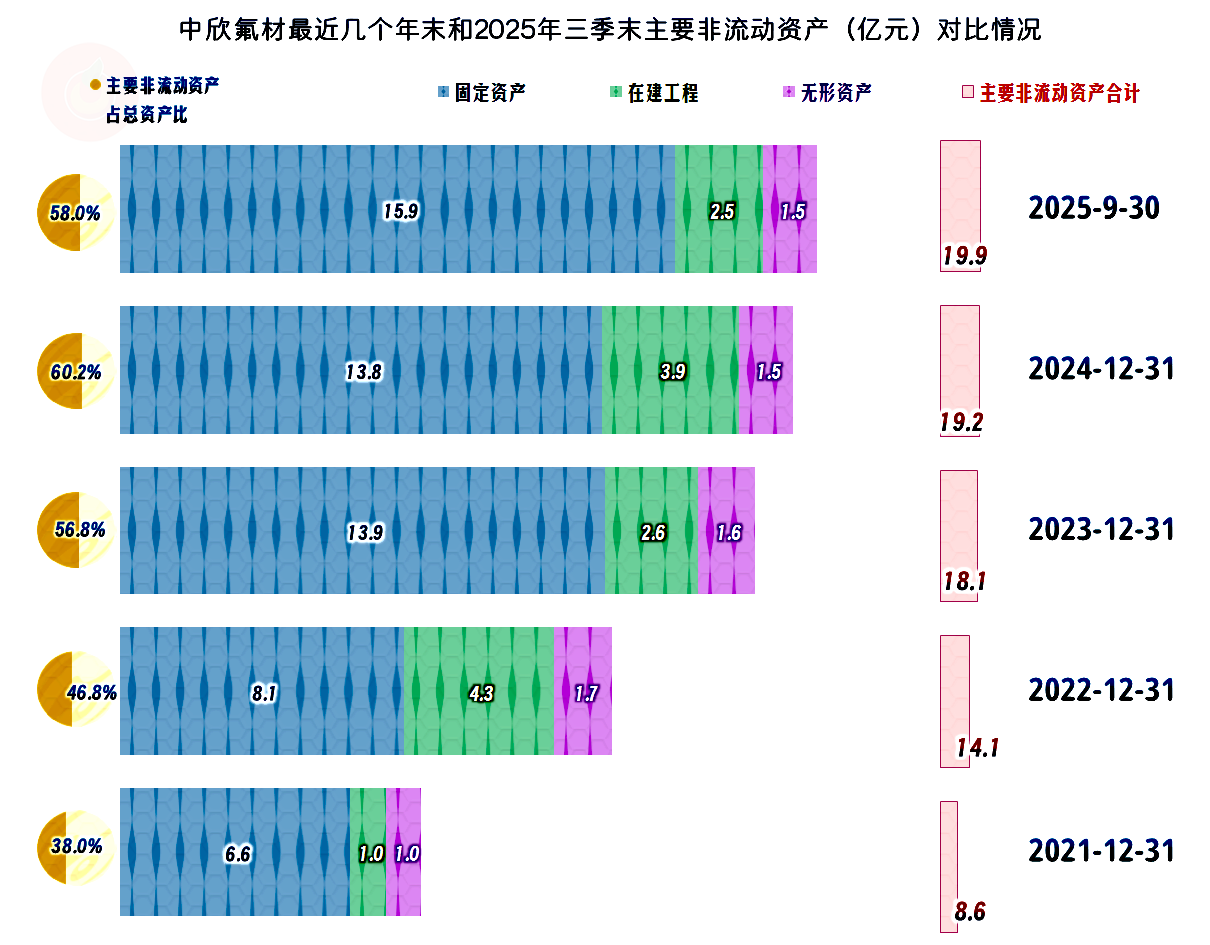 经营性长期资产和固定资产主要在2023年末增长明显;2024年末,增长了一些在建工程;2025年三季度末,主要是在建工程建成投产,转入了固定资产。