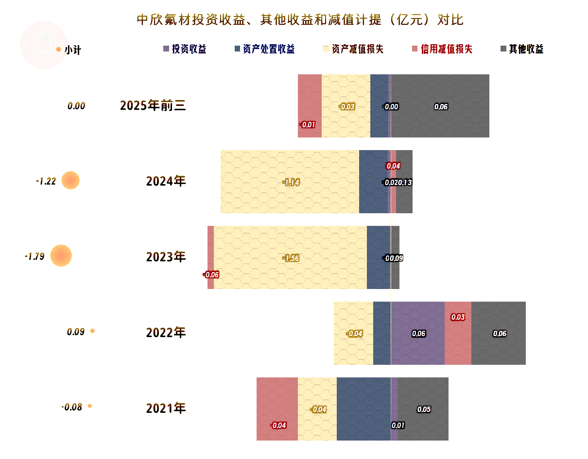在其他收益方面,2023年和2024年都是大额净损失的状态,主要是毛利率暴跌后,“资产减值损失”严重。这还是2023年,在主营业务微利状态下,仍然发生亏损的主要原因。2025年前三季度基本能持平了,至于全年会不会维持这种状态,现在还不好说,但就算有,也会比前两年好一些,毕竟毛利率比前两年要高得多。