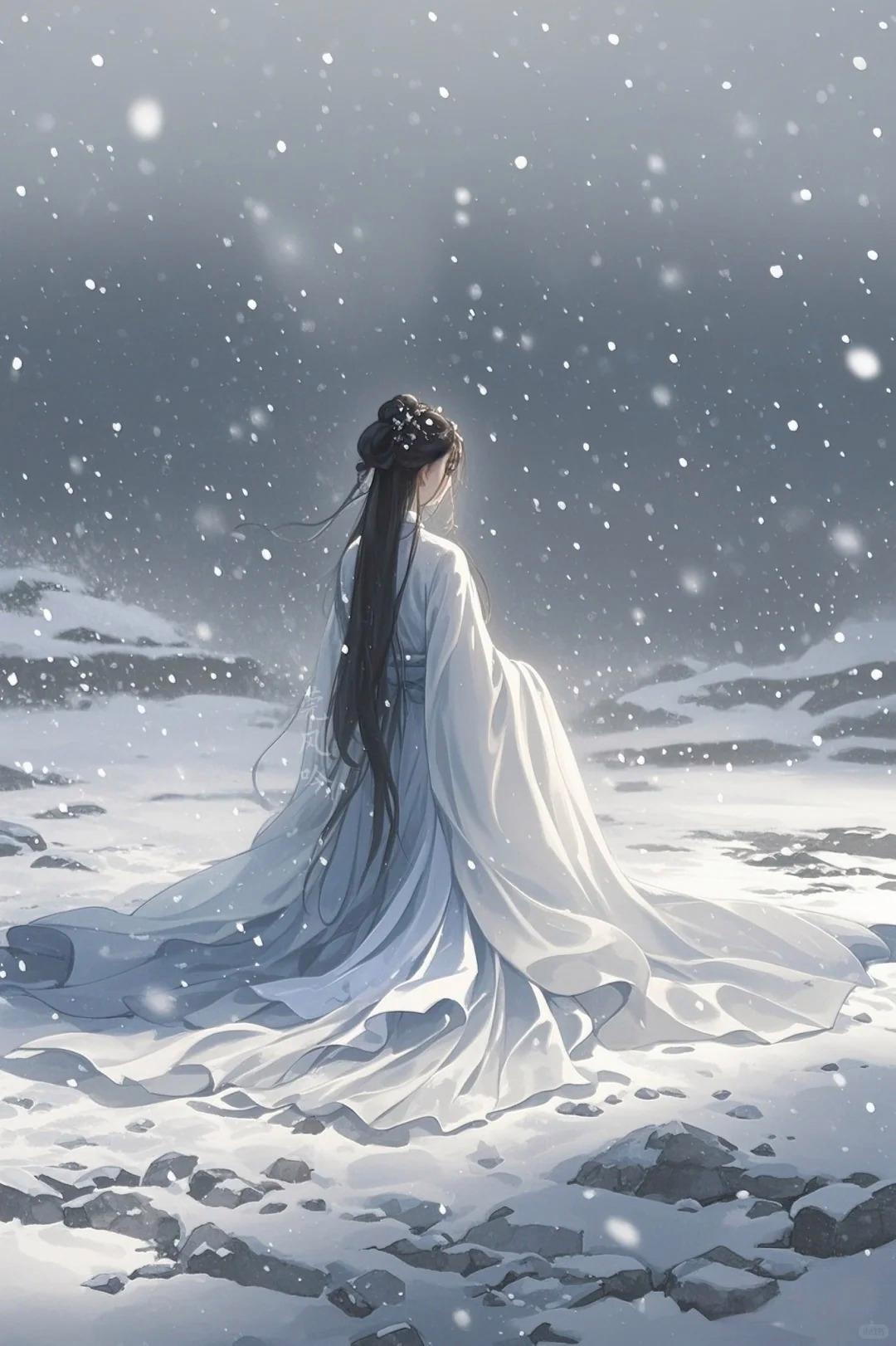 雪下得很大,整个江面都是飞舞的雪花。