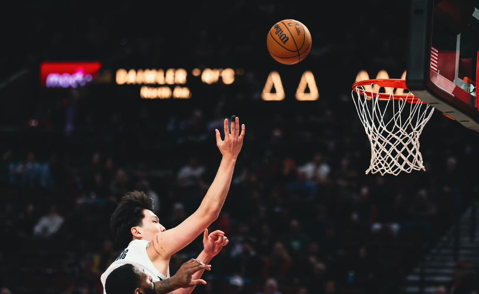 杨瀚森上场第一球就获得了出手机会,给韦斯利挡拆后的下顺,直接挑篮命中,啊过后面的三次三分球出手全部未能命中。小杨现在就差这一下,如果每场球能够在有限的时间内,命中一记三分球,也不用多了,那他的上场机会就能越来越多。