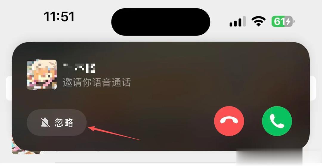 今后,当有微信视频或者语音来电时,如果不方便接听或者不想接听,但又不好直接挂断,就可以点击“忽略”按钮。