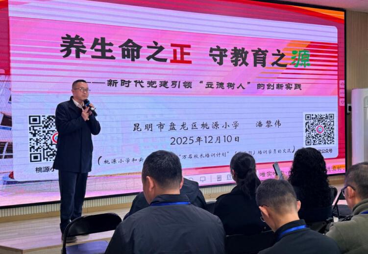 2025年12月10日,云南省第二轮“万名校长培训计划”学员研修交流活动在具有115年办学历史的昆明市盘龙区桃源小学举行。来自全省各地的116名参训校长及教育管理者齐聚一堂,通过沉浸式校园参访、主题报告、课堂观摩、特色活动展示等多种形式,深入考察学习了该校以“正源”文化为核心,系统推进立德树人、深化课程教学改革、优化学校治理的校本化实践路径,为全省基础教育学校高质量发展提供了可借鉴、可研讨的鲜活案例。