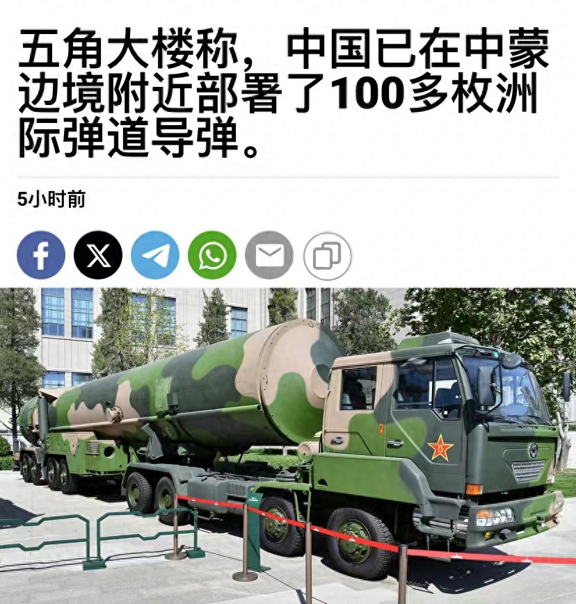 根据这份报告草案,中国已在靠近蒙古边境的三个发射井部署了100多枚洲际弹道导弹,根据美军检测这是东风-31固体燃料洲际弹道导弹。五角大楼此前已披露这些发射井的存在,但并未透露其中装载了多少枚导弹。该草案文件并未具体说明导弹的潜在目标。