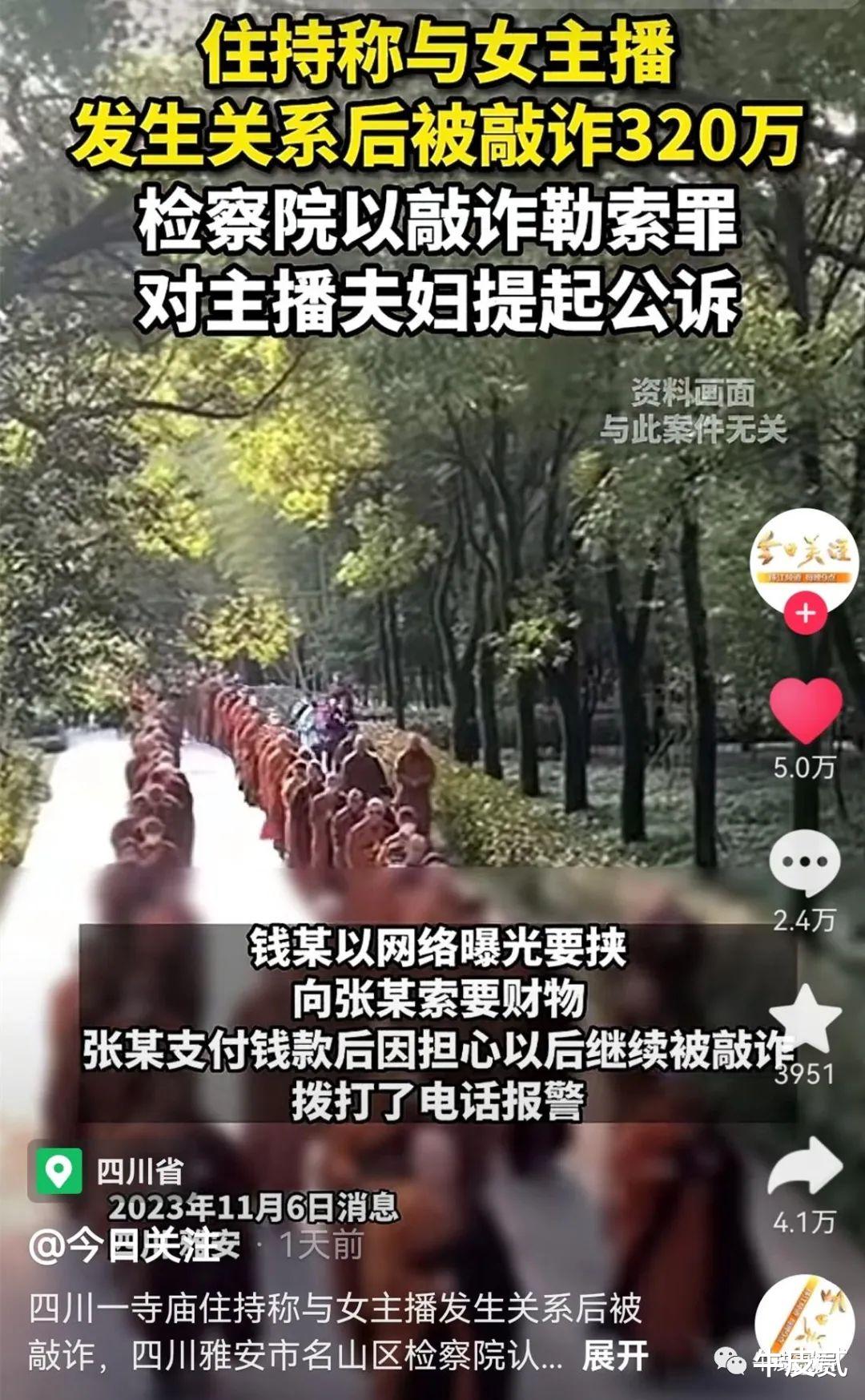 尽管及时止损,这位出家30余年的住持还是难逃俗世恶果。他与女主播的露水姻缘,已经被曝光于天下。