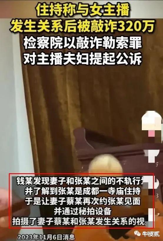 可让蔡主播万万没想到的是,自己和释住持的事情很快就被丈夫钱某发现,