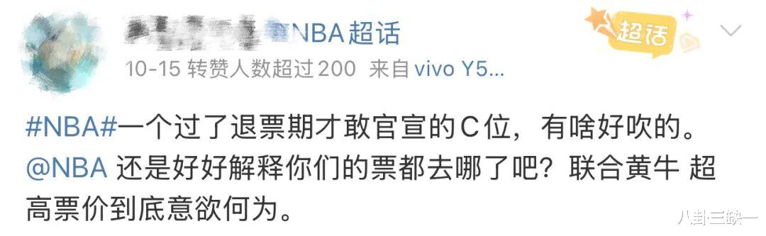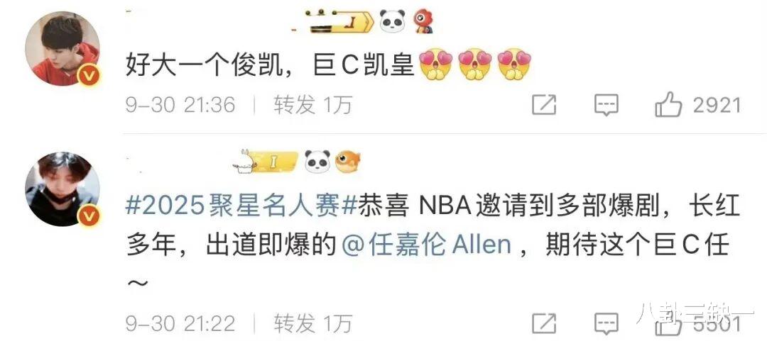 那就不得不提NBA官博发布的官宣海报了,说这是所有风波的“导火索”毫不夸张,两家粉丝间的火药味,就是从这条微博的转发区冒头的。你高呼“巨C任”,我立马回敬“巨C凯皇”,针尖对麦芒,谁也不肯退让。