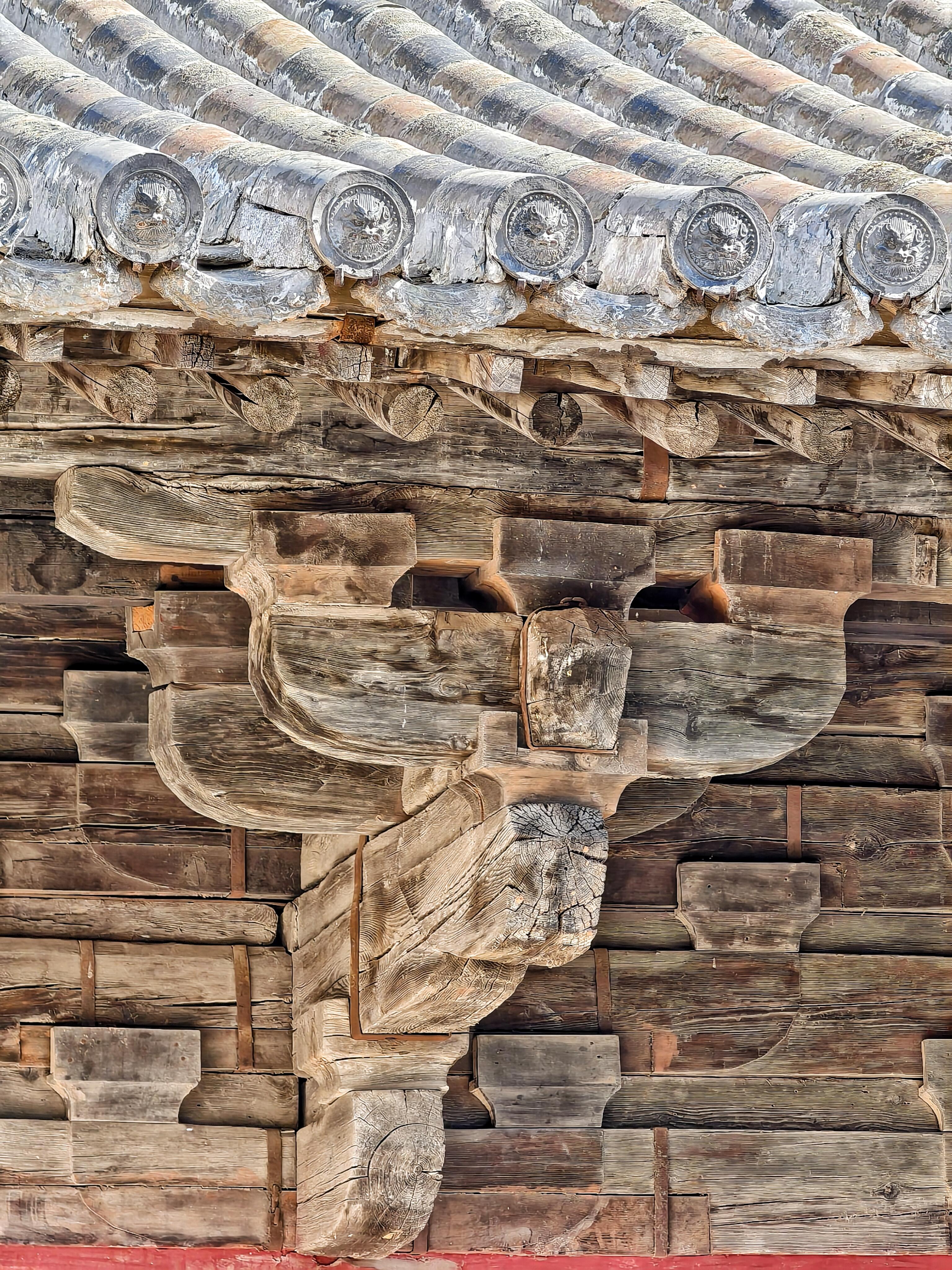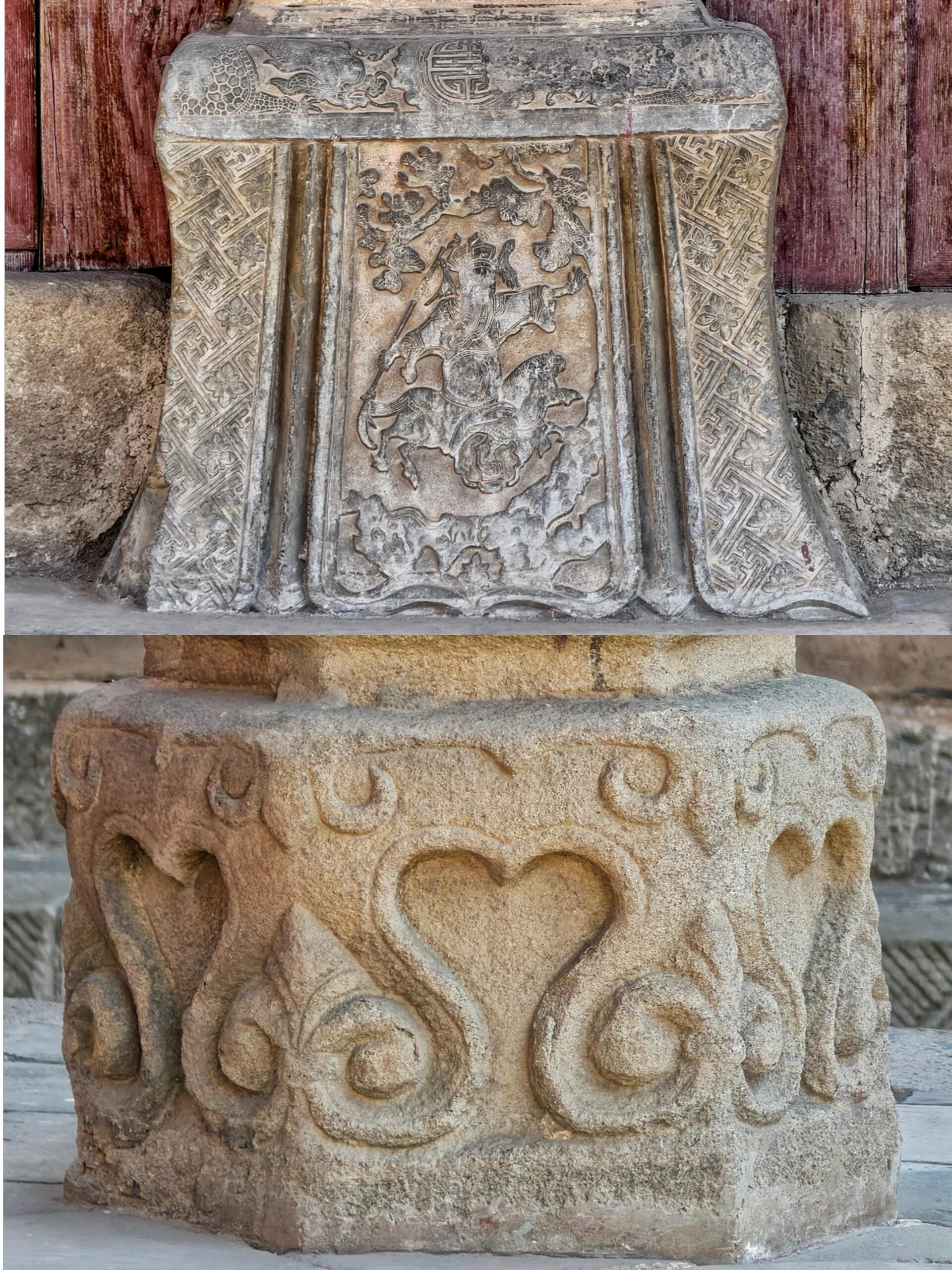 正殿坐北朝南,歇山顶的瓦垄里长着几丛瓦松,青灰色的瓦当边缘结着层薄霜似的白碱。殿前的月台用青石铺就,石头缝里嵌着枯黄的草,踩上去发脆。凑近了看,月台边缘的石雕已经磨得圆钝,辨不出原先是莲花还是牡丹,只有几道深深的刻痕,像老人手上暴起的青筋。
