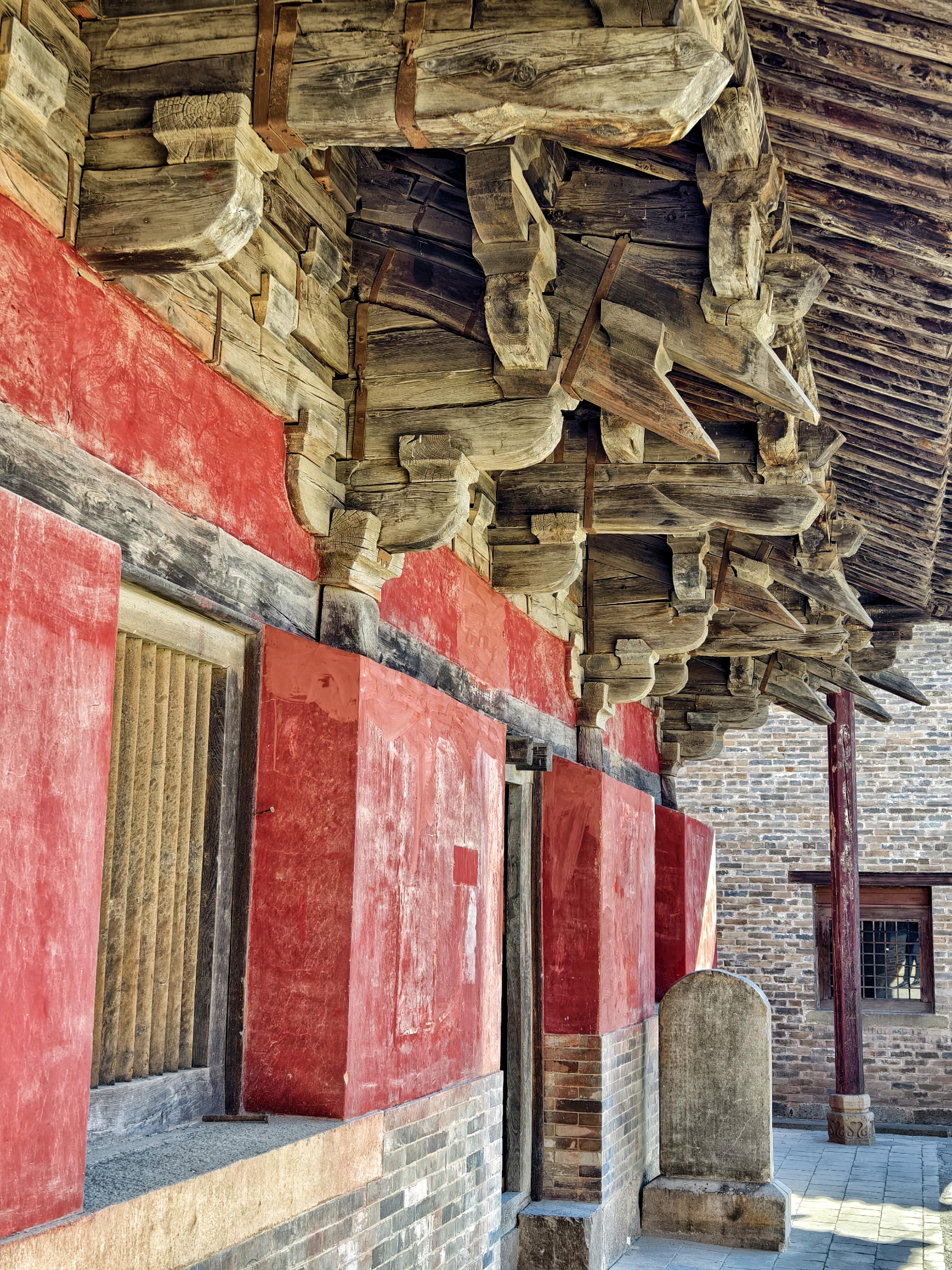 坐在殿前的台阶上晒太阳,听着远处田埂上拖拉机突突驶过的声音,混着寺里偶尔响起的铜铃声——是风刮过殿角的铁马。那铃声不脆,有点闷,像老人在咳嗽。阳光落在身上,暖得让人发困,恍惚间觉得这院子里的一切都没怎么变过,宋时的风,明时的雨,都还在这瓦缝里、木梁间留着痕迹。