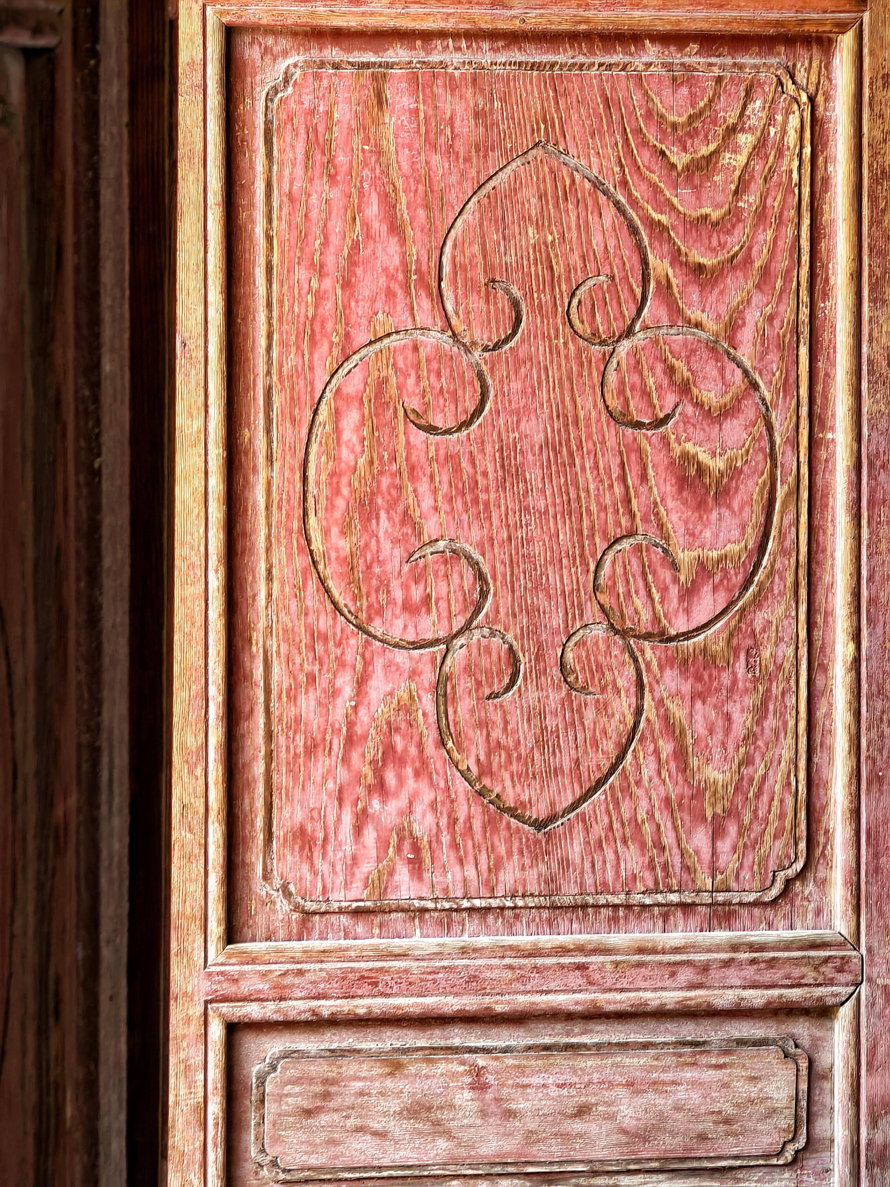 殿门是两扇对开的木门,门板上的漆早就剥落了,露出底下的木筋,像一道道浅色的血管。门上的铜环挂着铁锈,摸上去糙得硌手。轻轻推开门,一股混合着尘土和木料的气息涌出来,带着点潮湿的霉味,那是老房子特有的味道。