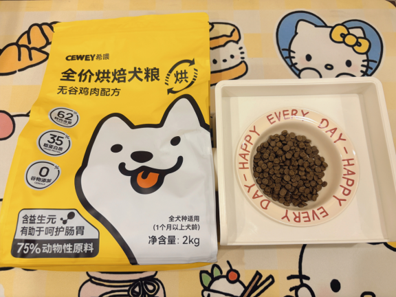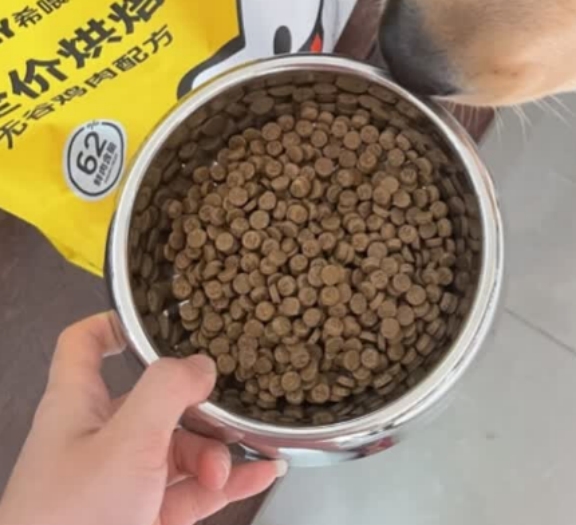 希喂这款是烘焙狗粮,鲜肉比例高,还添加了鲜鸡肝、啤酒酵母等天然成分,狗粮颗粒会带有淡淡的肉香味。颗粒清爽酥脆,用纸巾按压也不油腻,圆形颗粒大小均匀,适口性很好。很多铲屎官都反馈,狗狗第一次尝试就很爱吃,光盘很快速。