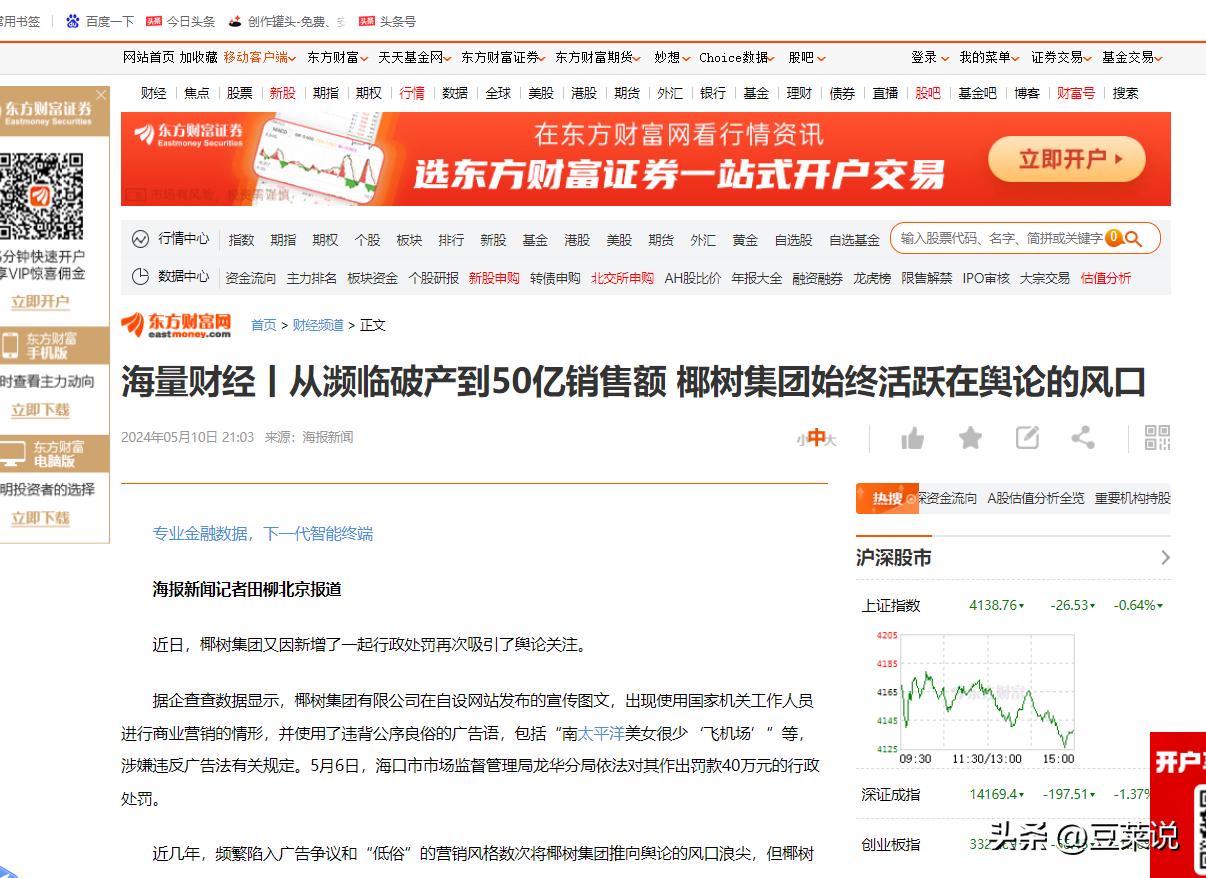 信息来源:海量财经丨从濒临破产到50亿销售额 椰树集团始终活跃在舆论的风口