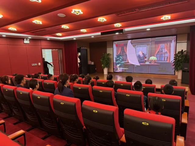 在红色影院,师生们认真观看教育片《血与火:新中国是这样炼成的》,片中通过当代青少年喜闻乐见的表现形式,激励大家继承革命先辈的光荣传统。在红歌传唱环节,队员们唱响《中国少年先锋队队歌》,用质朴而有力的童声,满怀深情地唱出了对党和祖国的热爱之情。