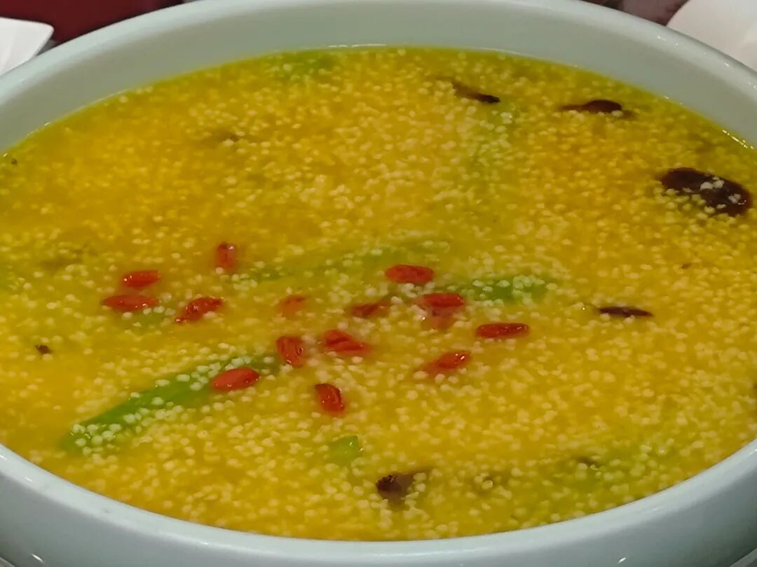 小米黄蘑烩丝瓜新上的菜品,好大一盘,金灿灿的十分养眼。浓稠恰到好处,里面的黄蘑、丝瓜、枸杞就像散落的宝藏,每口都有惊喜。带着淡淡的咸味,很适口。