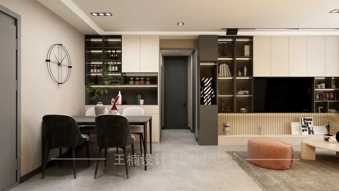 设计要点/色彩“少而精”:像案例里这样,用米色、灰色、木色做基础,少量亮色点缀,既高级又不会视觉疲劳;收纳“藏起来”:每个空间都做嵌入式或封闭式收纳,把杂乱藏起来,简约感自然就有了~