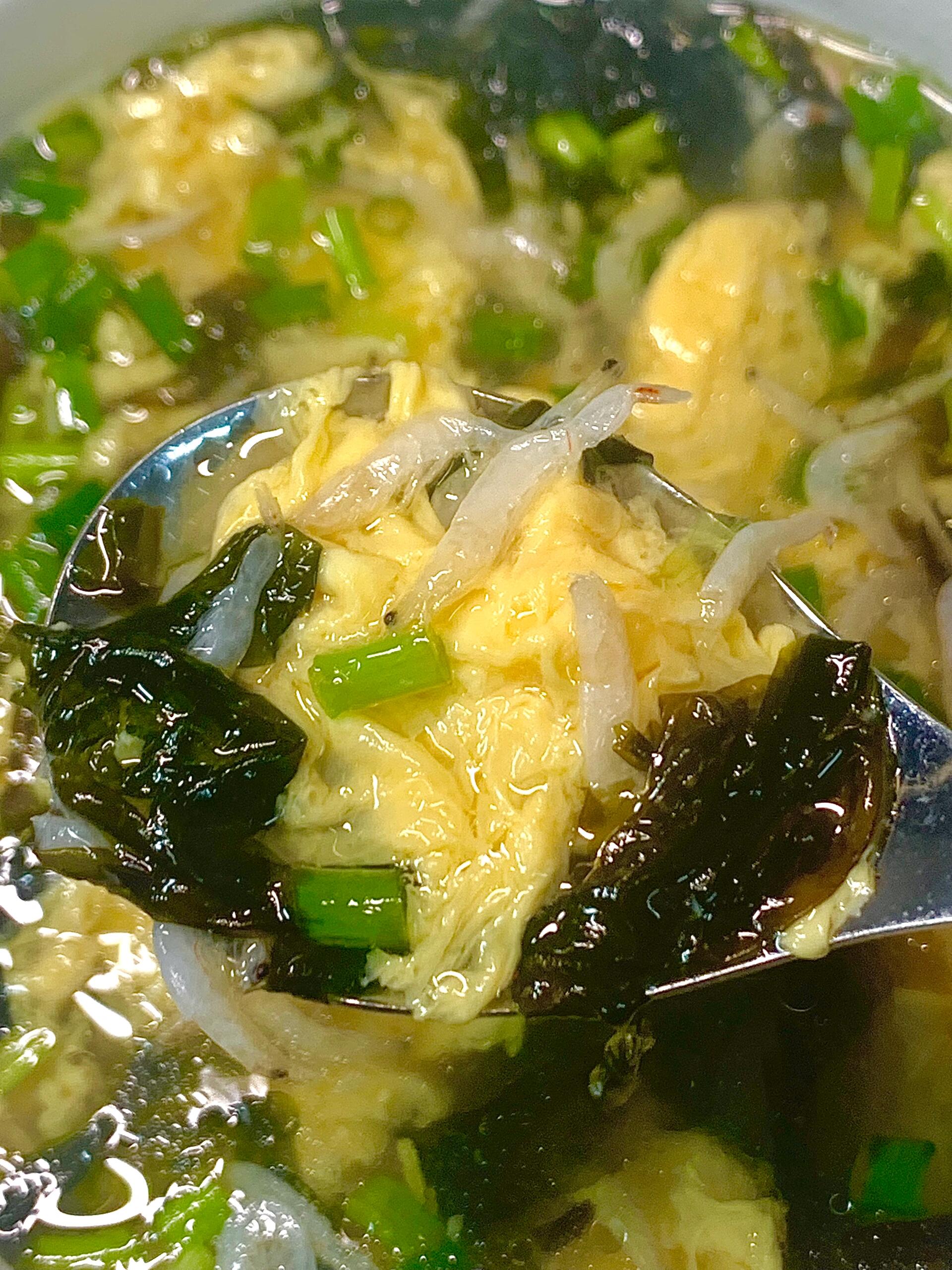 把汤盛进碗里,趁热喝上一口。先是香油的醇厚,然后是虾皮的鲜美,接着是紫菜的爽滑,最后是蛋花的嫩滑,几种口感在嘴里层层递进,简单却让人满足。