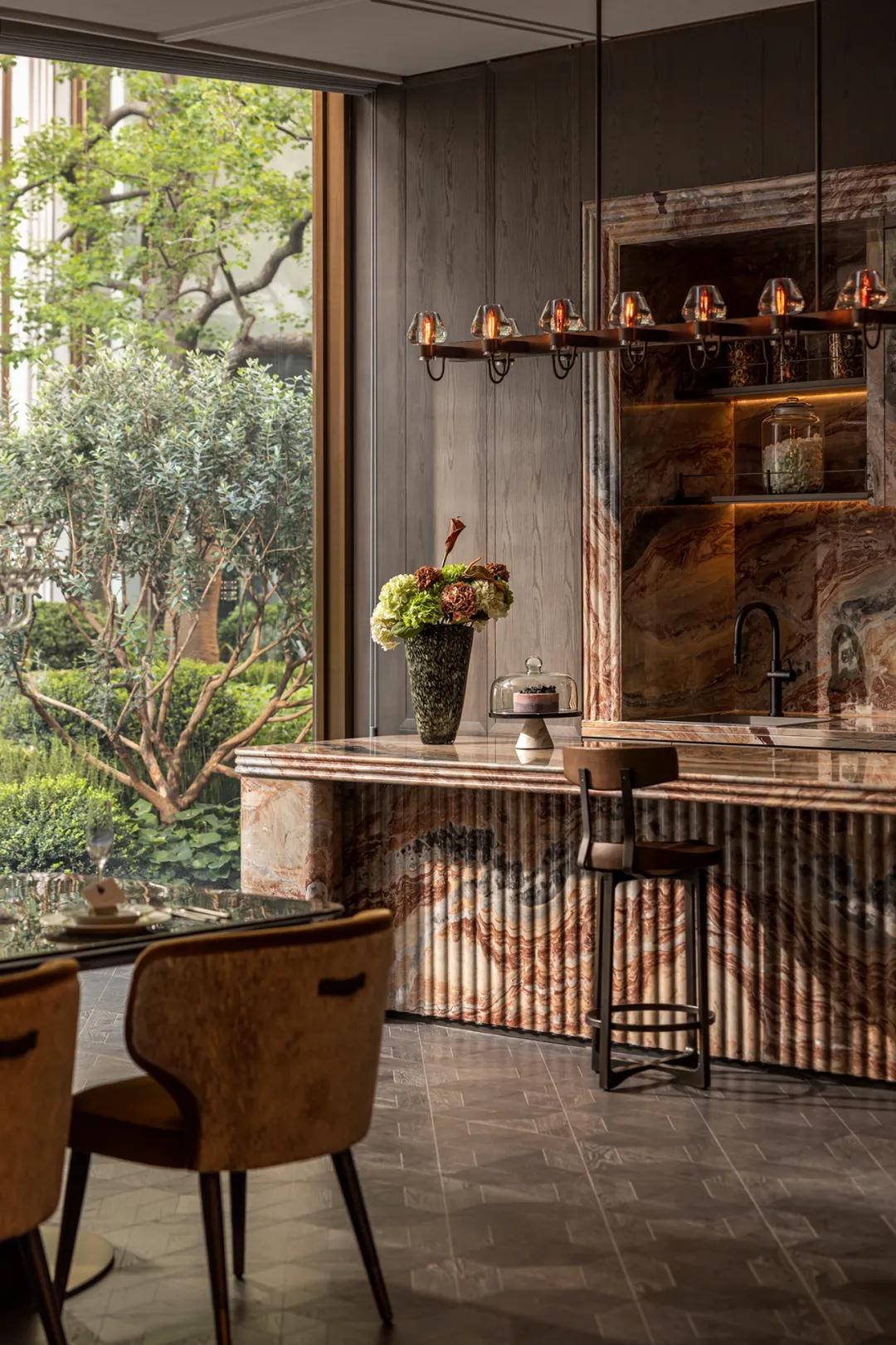 自然、艺术、美食完美融合的多功能区承载商务宴请、家庭飨宴与美食工坊等多元功能场景,妥帖映照每位居者所需。