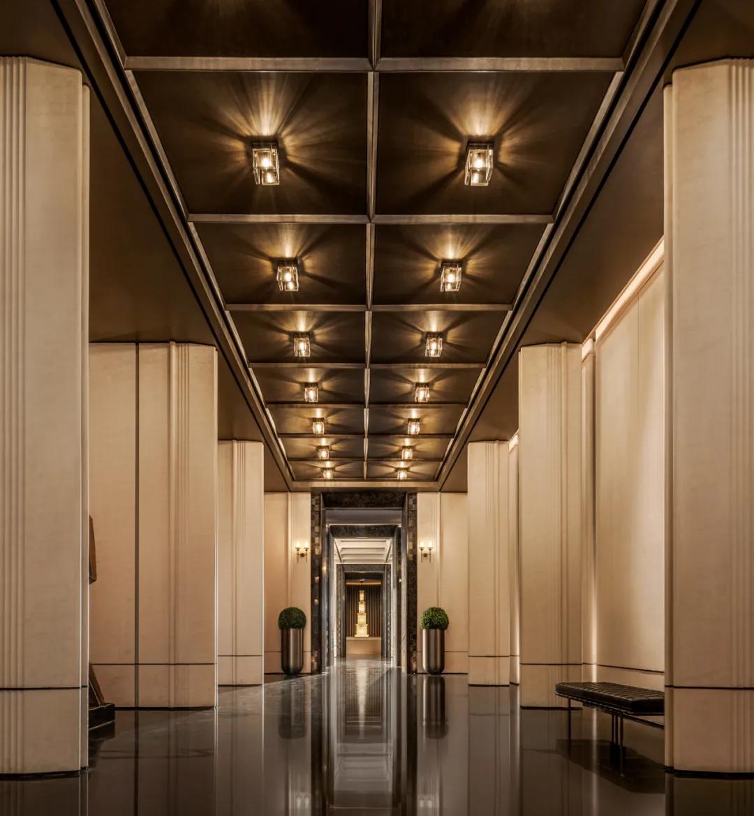 循步艺术连廊,光线与材质交织出细腻的节奏变化。此处不仅是空间的过渡,更是情绪的铺陈,如同电影中承上启下的长镜头,引导观者从喧嚣现实逐步沉入设计营造的精神场域。