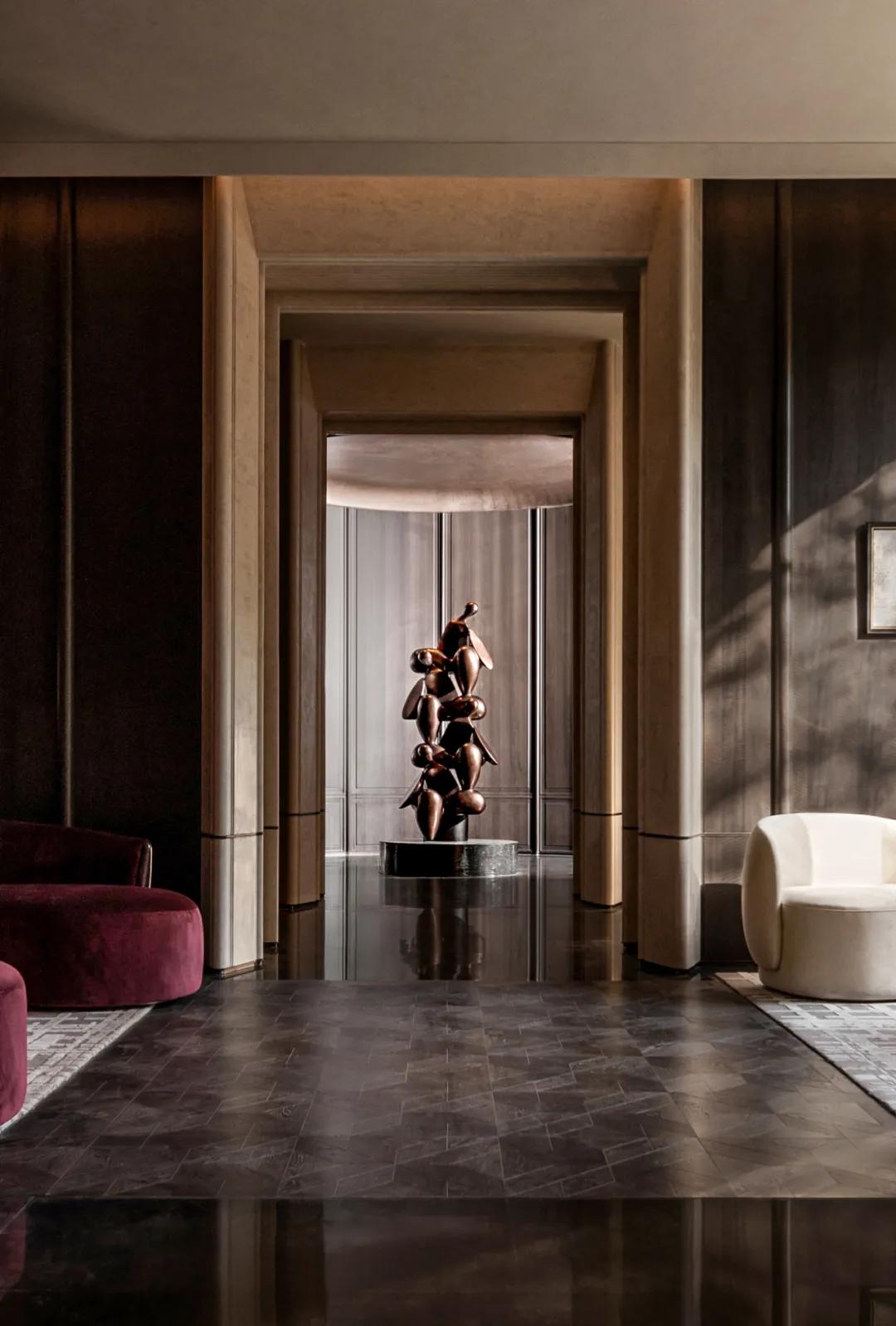 雕塑装点着廊道的艺术视觉,是高潮迭起,也是情绪的铺垫,引人至全新的瑰丽生活。