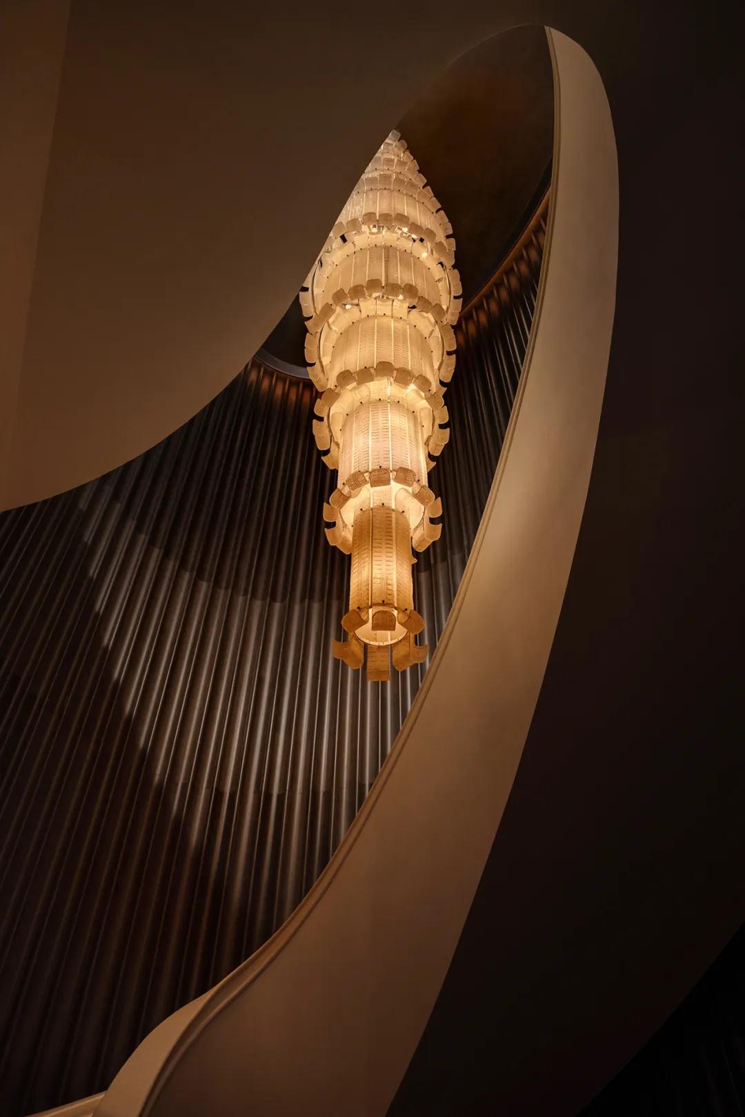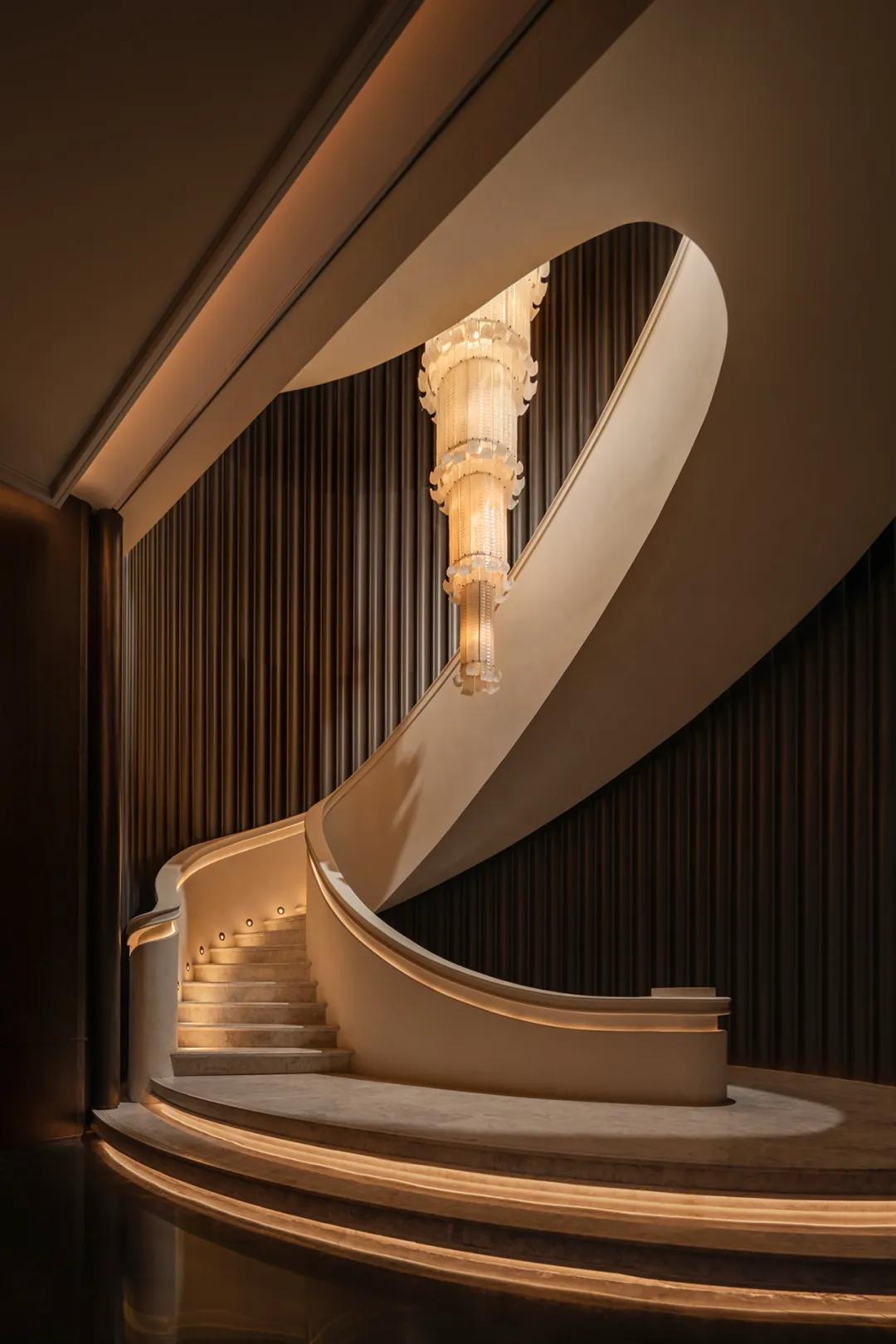 流线型艺术楼梯,宛若一曲凝固的旋律。它超越基础的衔接功能,成为空间的视觉焦点与诗意间歇,如一段没有对白的舞蹈,纯粹以姿态诉说美感,感受不疾不徐的逸然奢华。