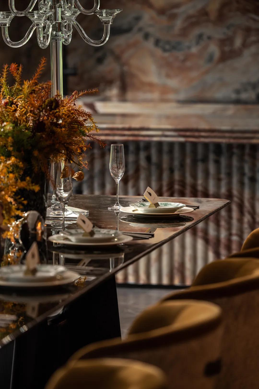 空间叙事自前厅悄然开启。极简的线条与沉稳的质感,奠定整部“影片”的基调;江河之韵艺术装置的精妙隐喻,暗示后续层层叙事。宾客步入的瞬间,如同电影的第一个镜头,仪式感与期待感同时拉满。