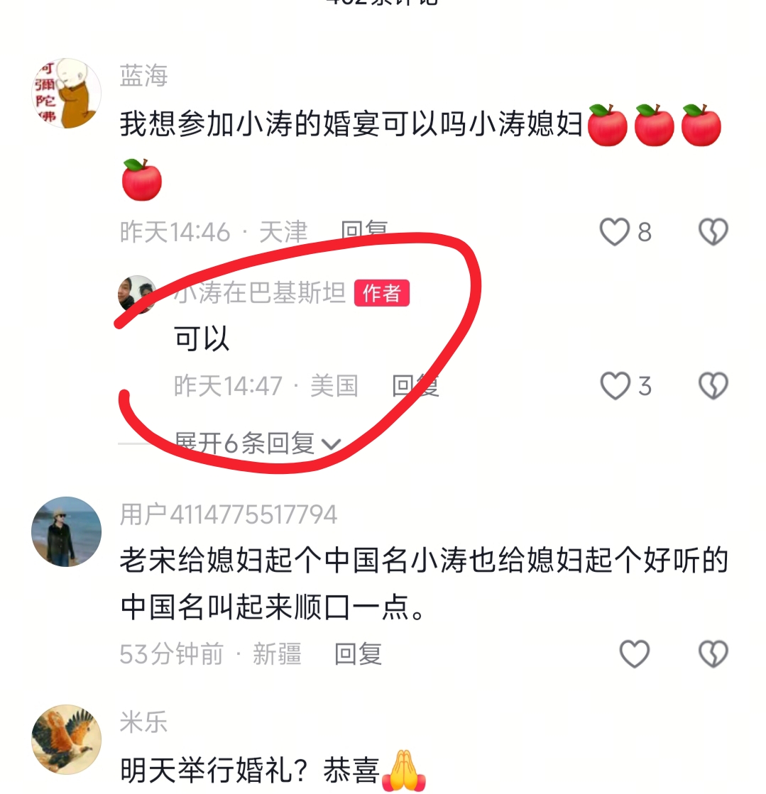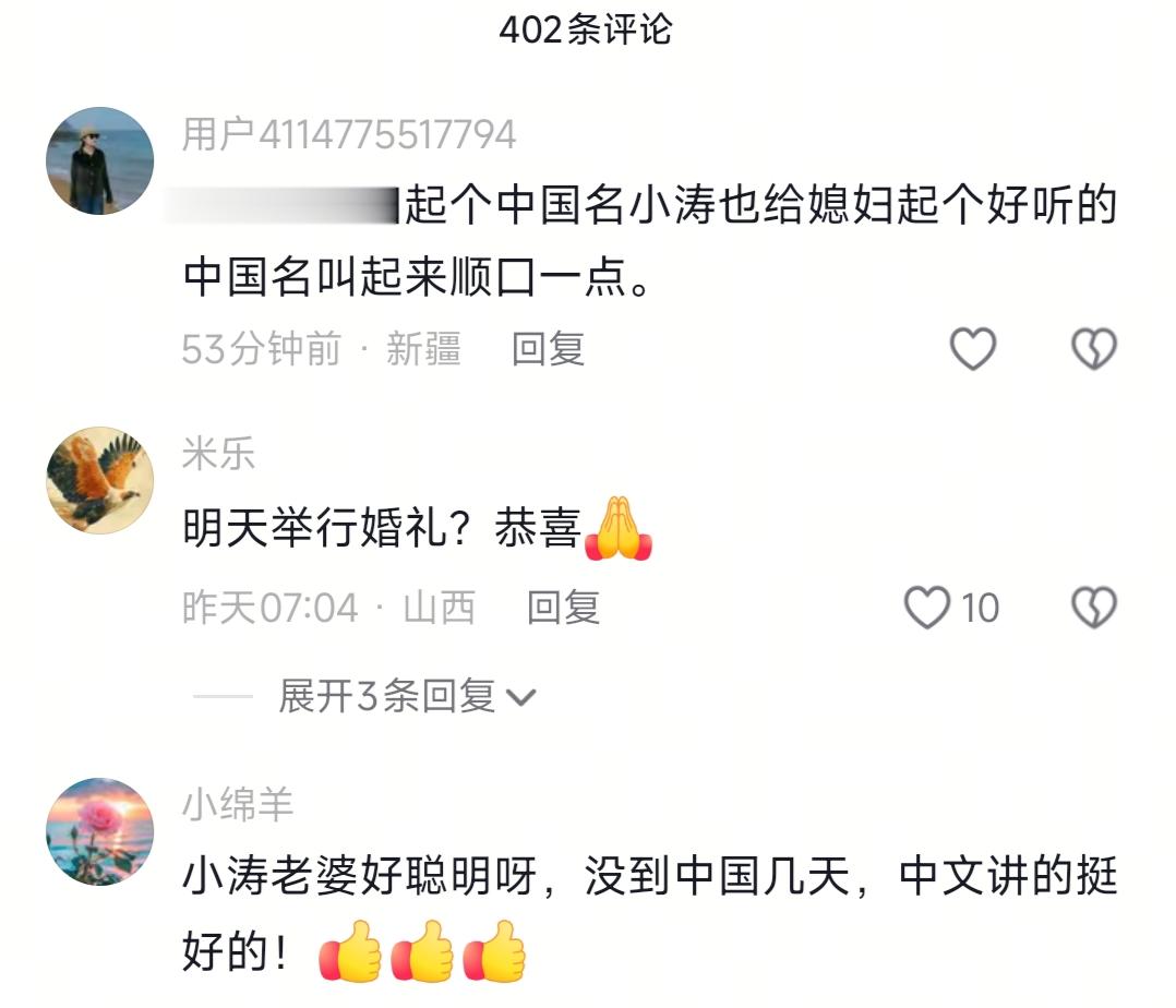 然后!重点来了!视频拍到一半,小涛突然说2月9号要办中式婚礼,邀请网友见证,他媳妇在旁边点头笑,那画面太甜了!我晕,本来以为就是回应争议,结果藏着这么大的惊喜,这转折谁能想到?评论区直接炸了,全是祝福的,还有人问“会不会直播”“想看看中式婚礼细节”,说实话,我也超期待,毕竟跨国婚姻的中式婚礼,想想就有意思!
