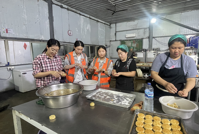 作为中秋节的象征,月饼承载着团圆与思念。印尼晨曦硫磺制酸项目部举办了别开生面的“巧手包月饼”文化体验活动。中方员工化身文化使者,向充满好奇的当地员工详细讲解中秋节的来历和习俗,并一步步示范如何和面、制馅、压模。当地同事们兴致勃勃地参与其中,虽然手法略显生疏,制作的月饼形态各异,但现场充满了欢声笑语。当一个个饱含心意的手工月饼出炉时,大家共同品尝这份甜蜜,不仅感受到了中华美食的精妙,更在协作中深化了彼此的了解和友谊。小小的月饼,成为连接不同文化、促进民心相通的甜蜜桥梁。