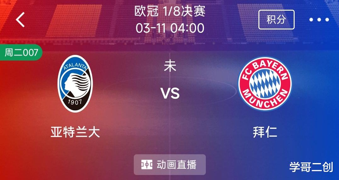 周二 007 欧冠:亚特兰大VS拜仁