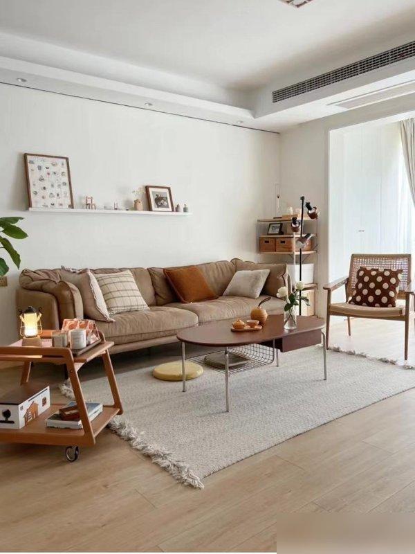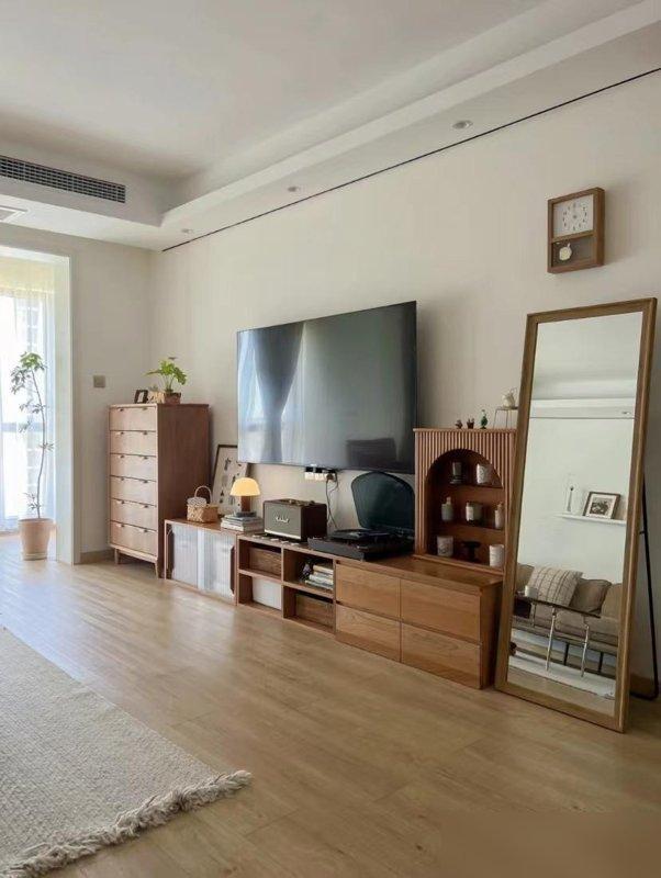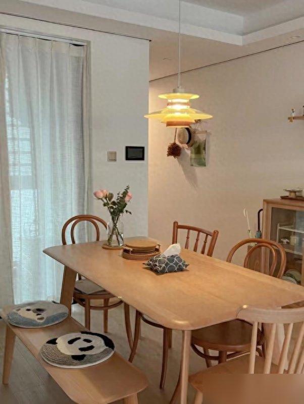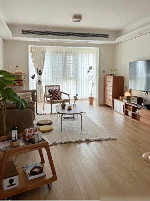 )挂着装菜苗的松布包、织到一半露线头的松绿围巾;看见客厅没装推拉门的阳台,阳光从绿萝叶缝里漏下来铺在原木地板上……突然就懂了当网友说"被治愈"的感觉:原来最安心的松,从来不是装修公司给你的"高级方案",是日子磨出来的松。