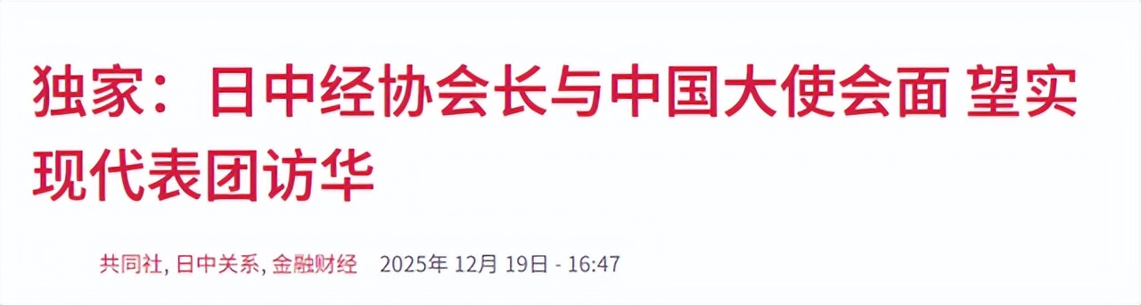 不久前,据日本共同社报道,日本日中经济协会会长进藤孝生在东京与中国驻日大使吴江浩会面,明确提出希望组建高级别经济代表团,在2026年1月下旬访华。