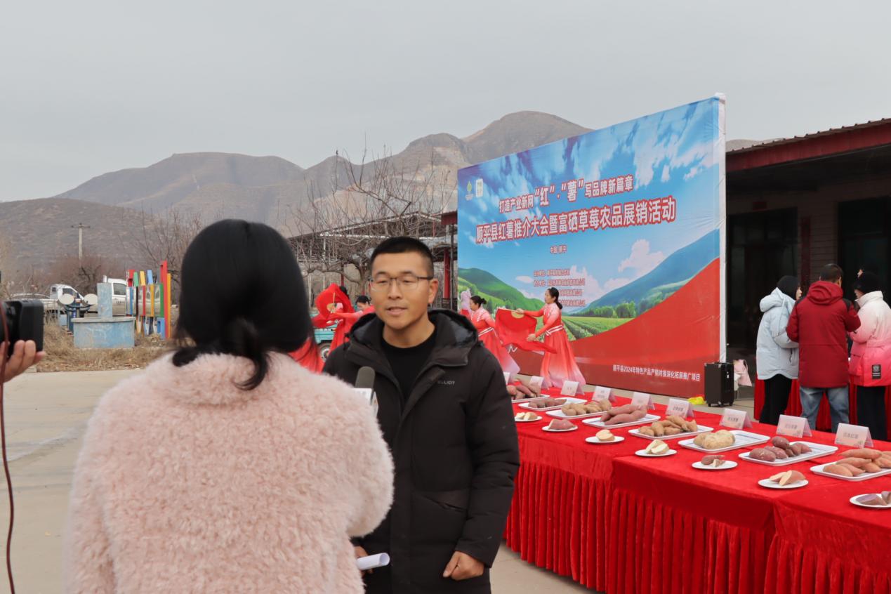 “红薯满仓映笑颜,丰收喜悦满心田”。2024年12月19日,围绕顺平县2024年特色产品产销对接深化拓展推广项目实施,由顺平县供销合作社组织主办,保定市青耕农业科技有限公司、保定玉静农业科技有限公司、顺平县德盛乡村建设有限公司协办的“打造产业新网‘红’·‘薯’写品牌新篇章”顺平县红薯推介大会暨顺平富硒农品展销活动在顺平县金实农业基地举办。