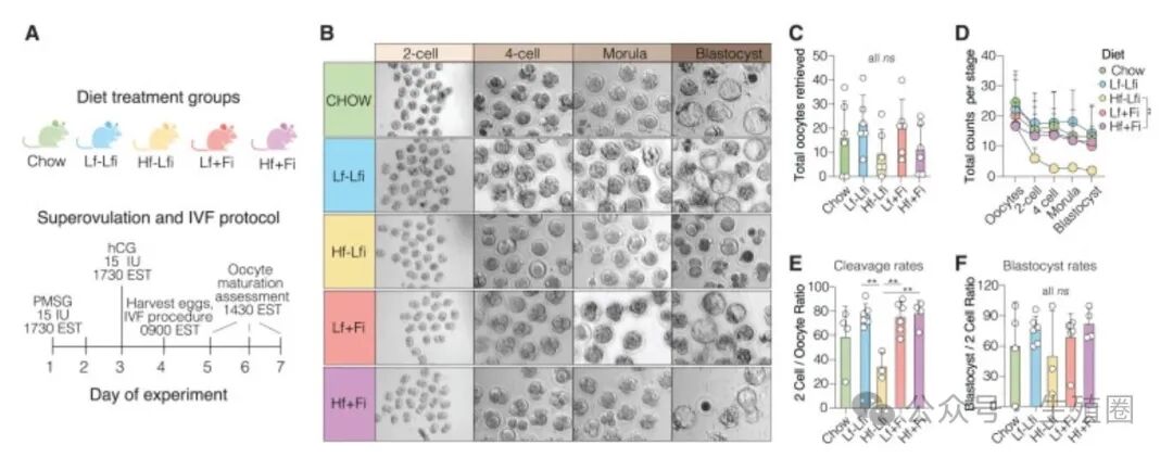 08用饮食保护卵巢真的有效吗?毕竟上面的试验只是从卵巢储备来看的,真实生育情况会有改善吗?研究者在小鼠成年后,通过给它们做试管婴儿测试真实的生育情况。