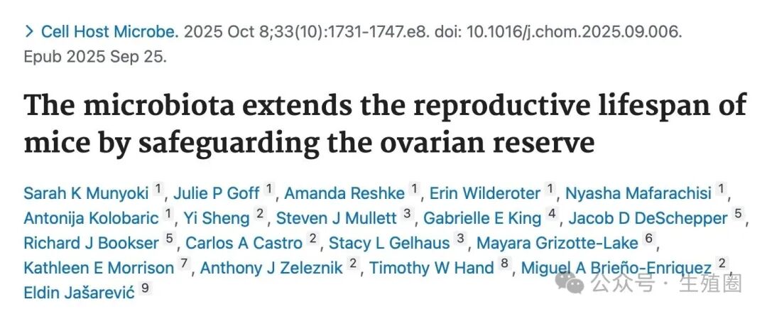 The microbiota extends the reproductive lifespan of mice by safeguarding the ovarian reserve. Cell Host Microbe. 2025 Oct 8;33(10):1731-1747.e8. doi: 10.1016/j.chom.2025.09.006. Epub 2025 Sep 25.