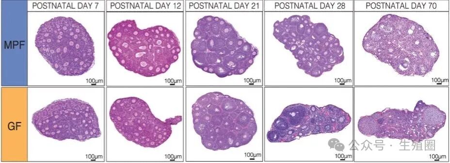 等到小鼠成年后,大约第70天,无菌小鼠的卵巢储备几乎要空了,虽然此时生产线似乎变得正常了,但为时已晚,因为宝贵的原始库存已经在青春期被挥霍一空。