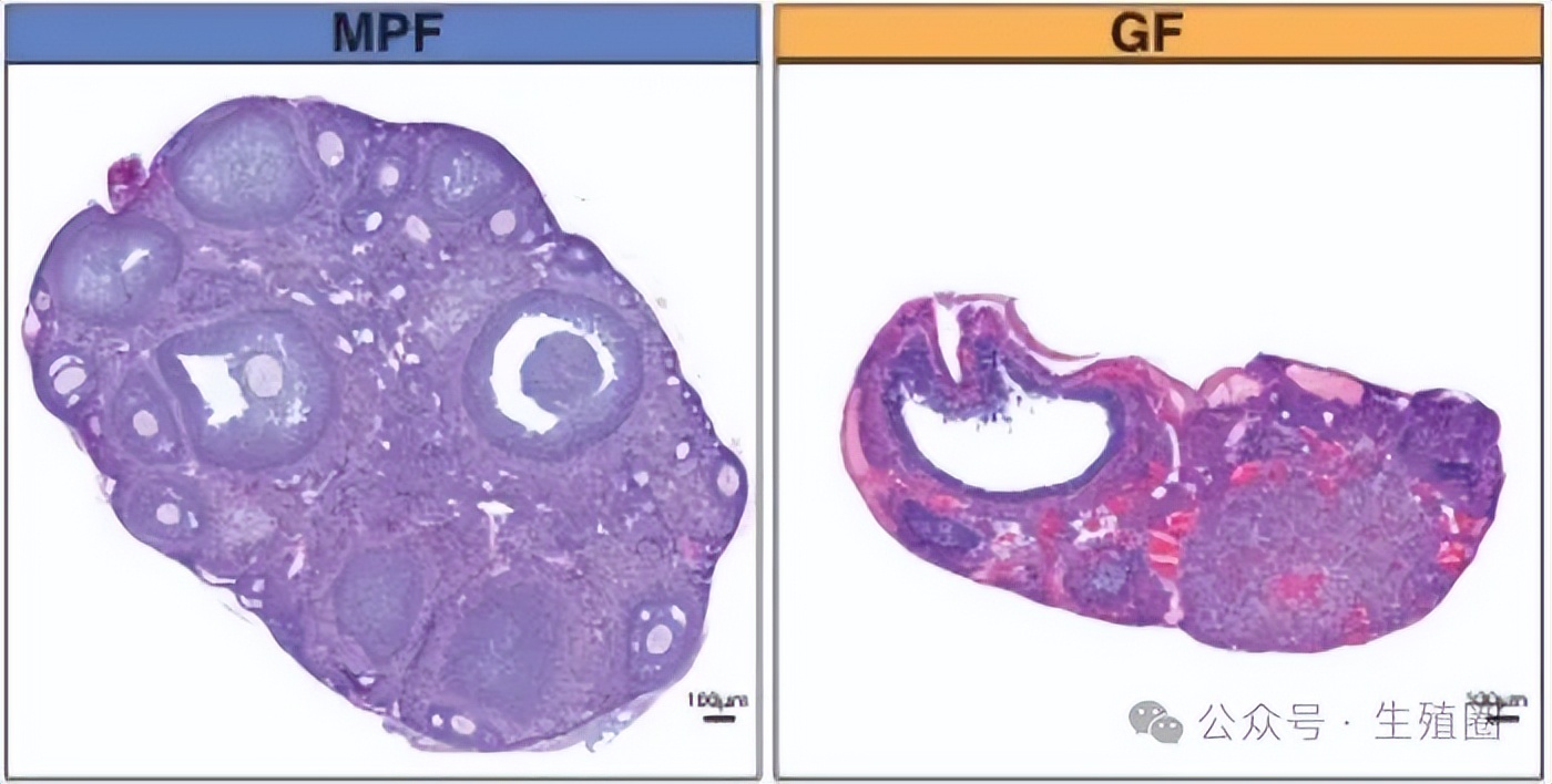 无菌母鼠卵巢储备量只有正常母鼠的一半,但现有的卵子还能正常发育,排卵正常,这说明问题出在卵巢储备上。