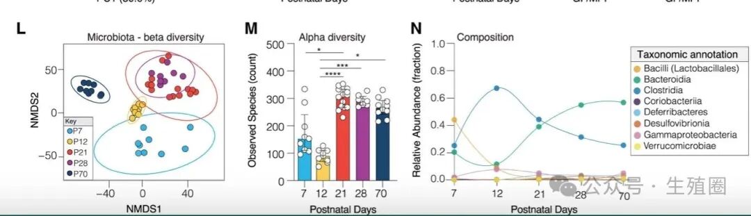 04肠道菌群与卵巢关键期的一致性研究者还在卵巢发育过程中同步追踪了肠道微生物的变化。