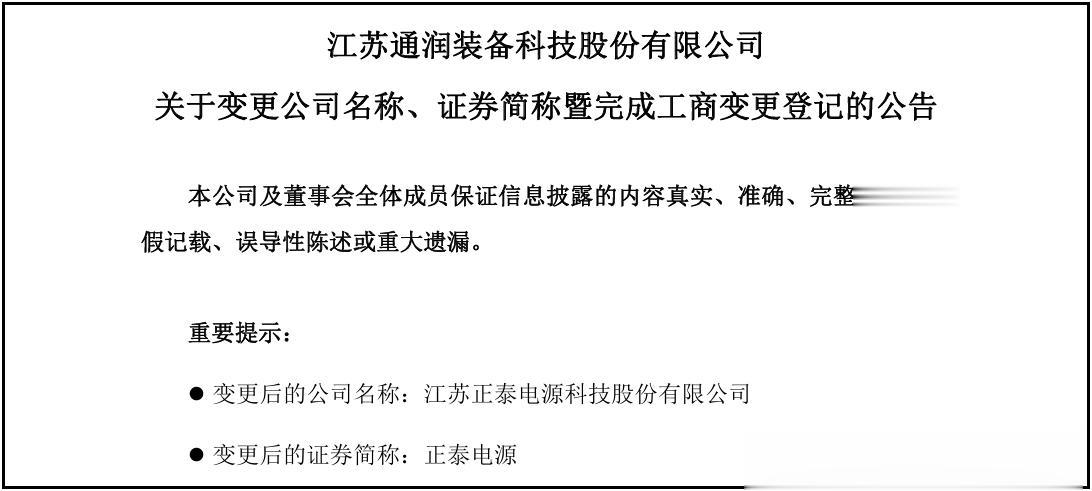 2026年1月16日,通润装备正式更名为“正泰电源”,证券简称同步变更,深交所上市代码保持不变。两家公司同属正泰集团,实际控制人均为南存辉,且各自独立运营。