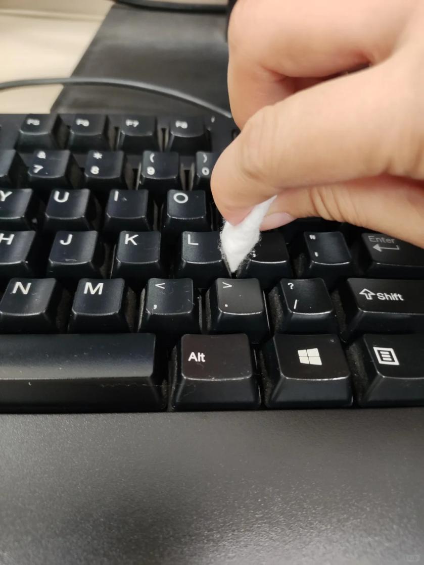 用擦完脸的洗脸巾卷成小卷,塞进键盘缝隙里,轻轻一擦,灰尘和碎屑就能被带出来。