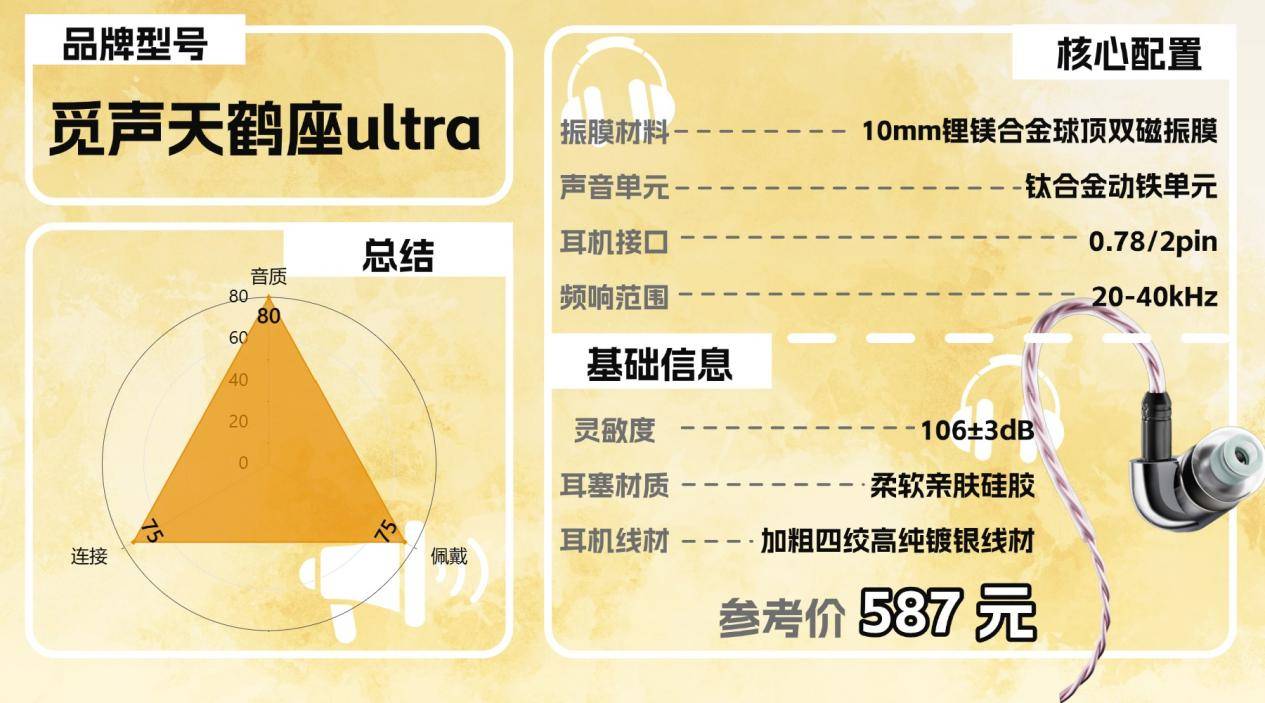 配置方面,随机附带高纯度铜镀银线材,并支持可换插头设计,使用灵活。包装内还提供了两种不同取向的耳塞套,方便用户根据声音风格或佩戴舒适度进行调整。